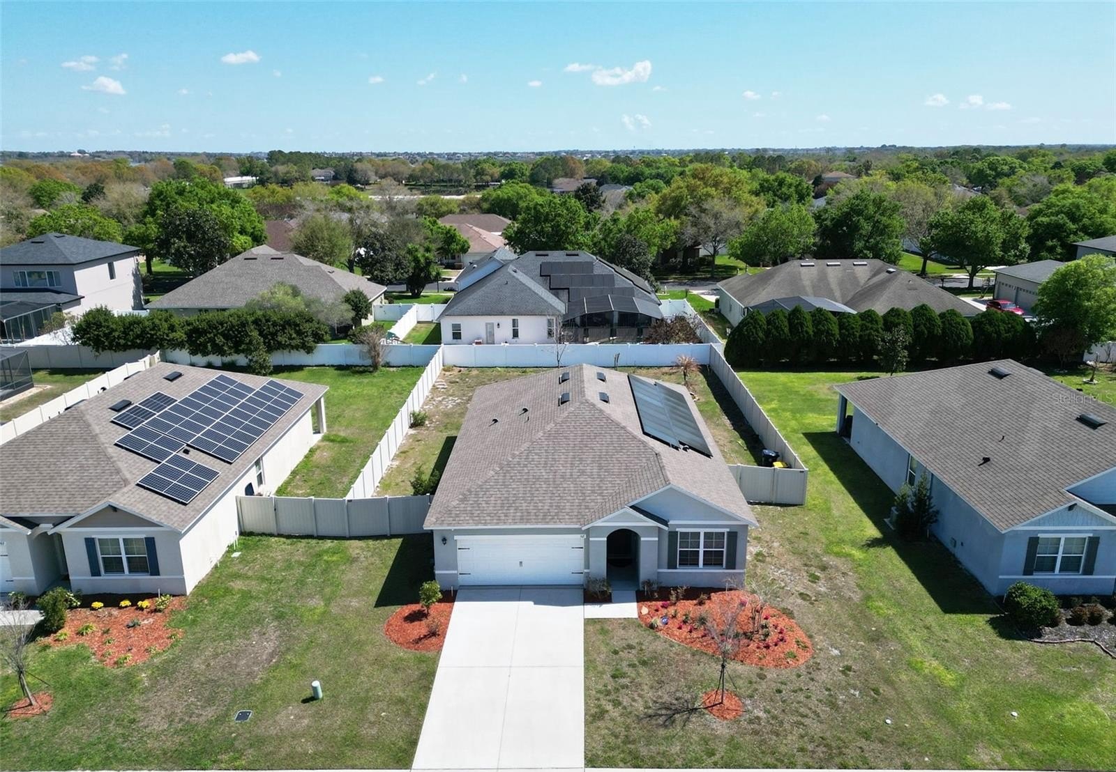 SOLAR PANELS WILL BE PAID IN FULL AT THE CLOSING. NO CDD. Life at Auburn Grove brings the best of Florida living with convenient access to nearby beaches, lakes for boating and fishing, parks, shopping, dining, and entertainment. Enjoy cultural attractions such as the Straz Center for the Performing Arts, exciting adventures at Busch Gardens Tampa Bay located approximately 40 miles away, and the magic of Walt Disney World Resort less than 24 miles from home. Built with durable block construction, this thoughtfully designed one-story home maximizes living space with an open-concept kitchen overlooking the living area, dining room, and covered rear lanai, creating the perfect setting for everyday living and entertaining. The popular floor plan features a spacious kitchen island, dedicated dining area, and an ample sized pantry for extra storage, along with stainless steel appliances that make meal preparation effortless. The primary bedroom is privately located at the rear of the home and features an en-suite bathroom with double sinks and a walk-in shower. Two additional bedrooms share a second full bathroom, providing comfortable accommodations for family or guests. This home also includes a Smart Home Technology Package, allowing you to conveniently control and monitor features of your home from your smart device whether you are home or away.
