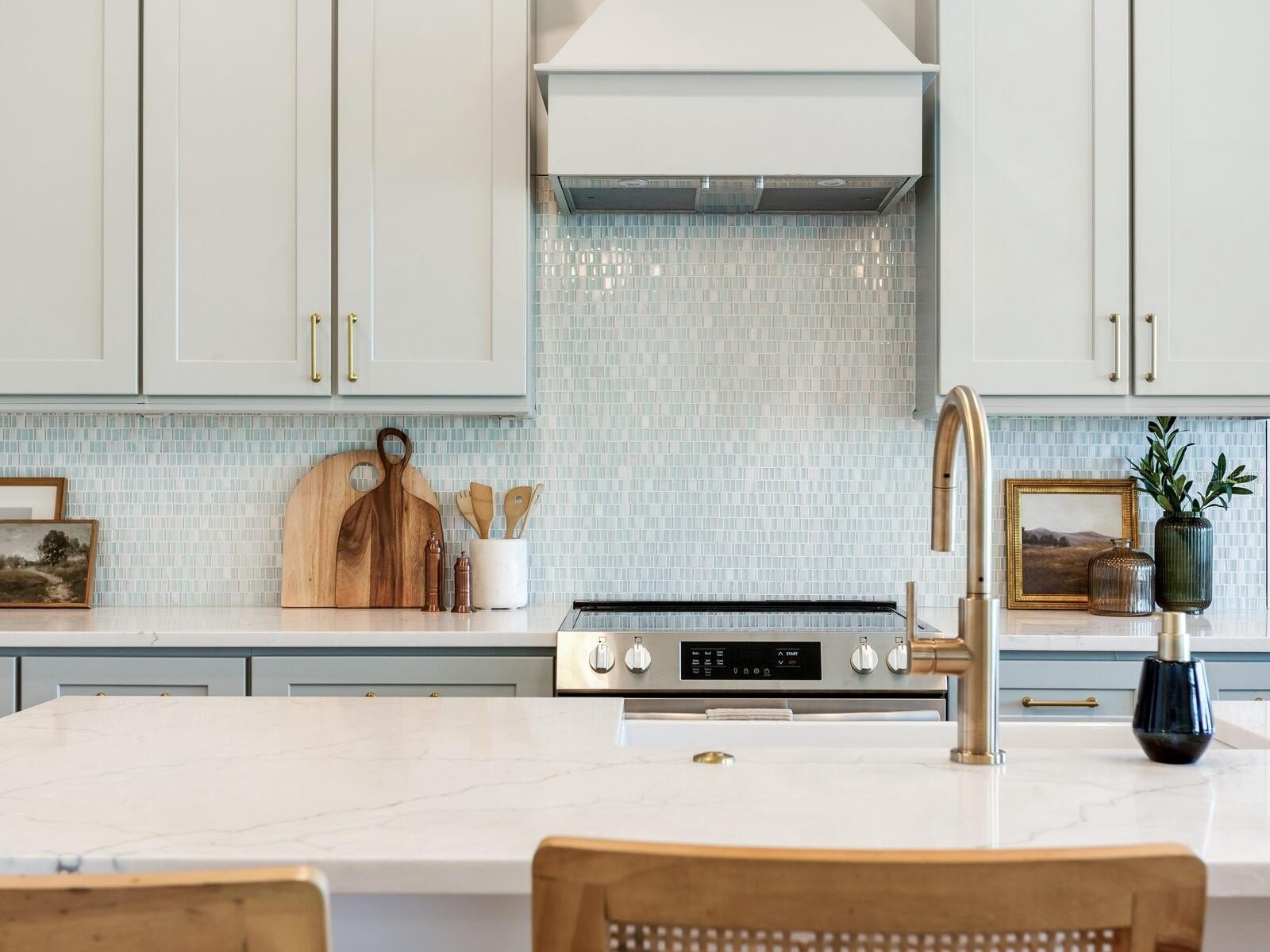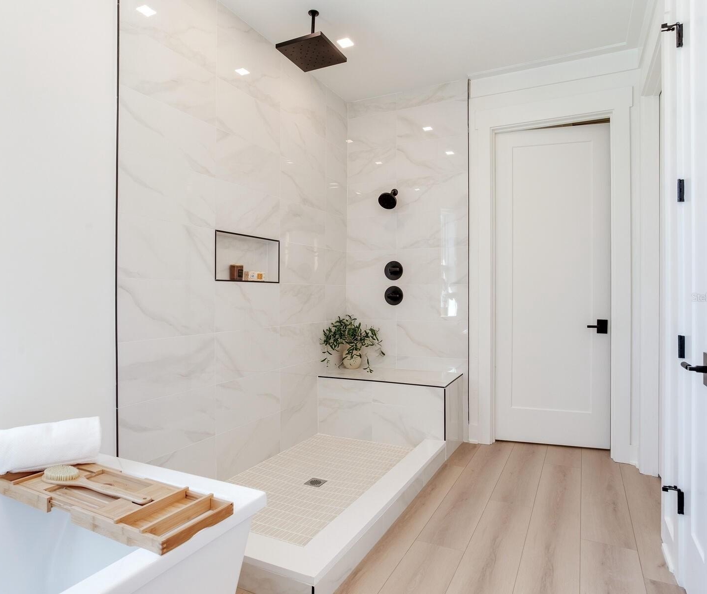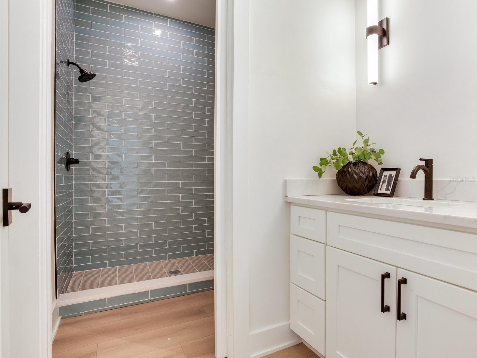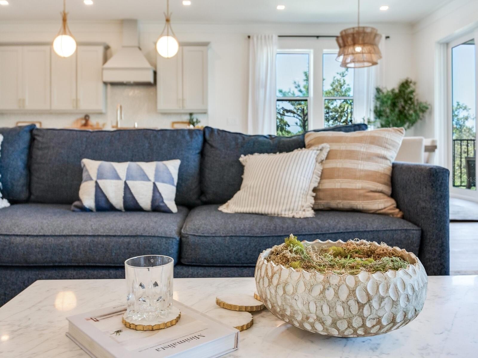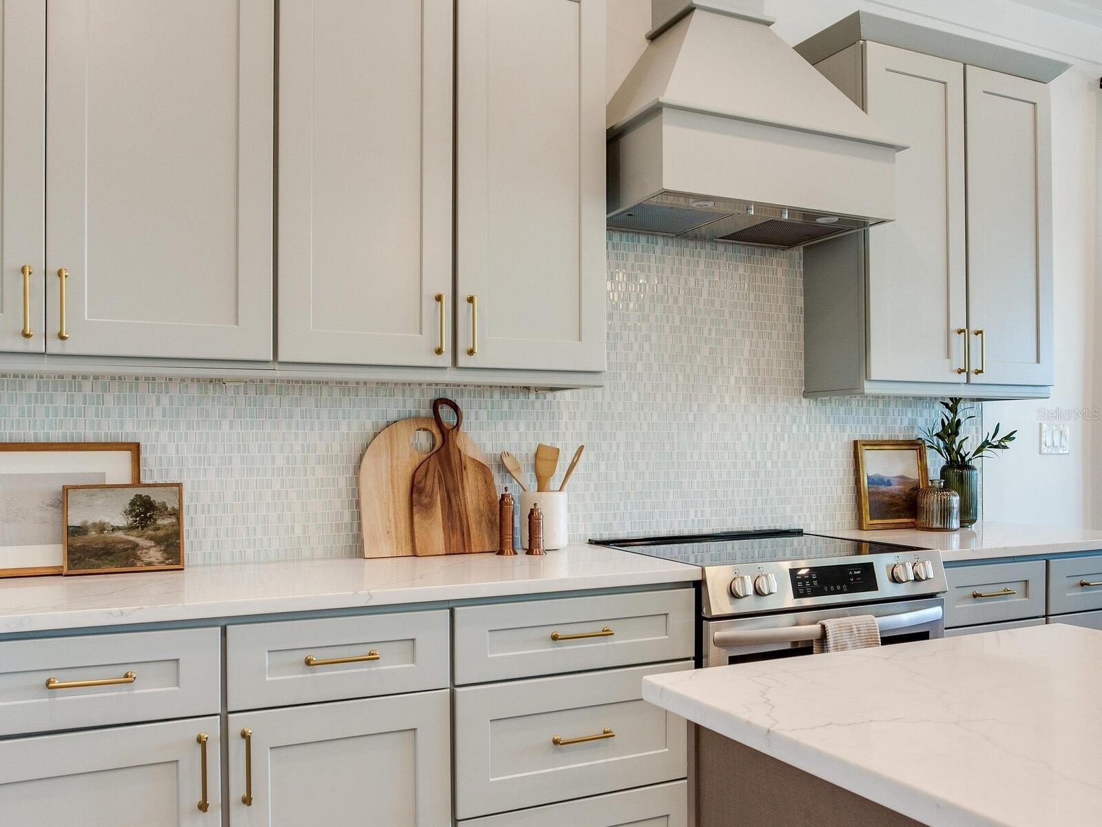 Luxury interior finishes include smooth drywall, 8 foot interior doors, tiled bath and shower surrounds, and coastal crown molding and baseboards throughout, creating a bright and polished living environment.