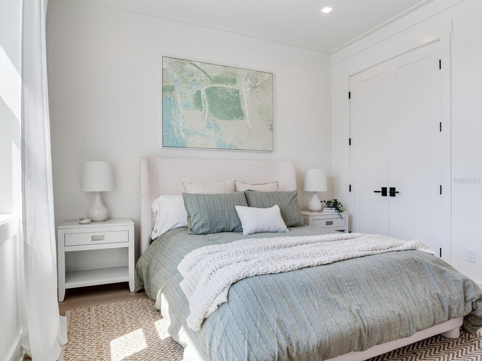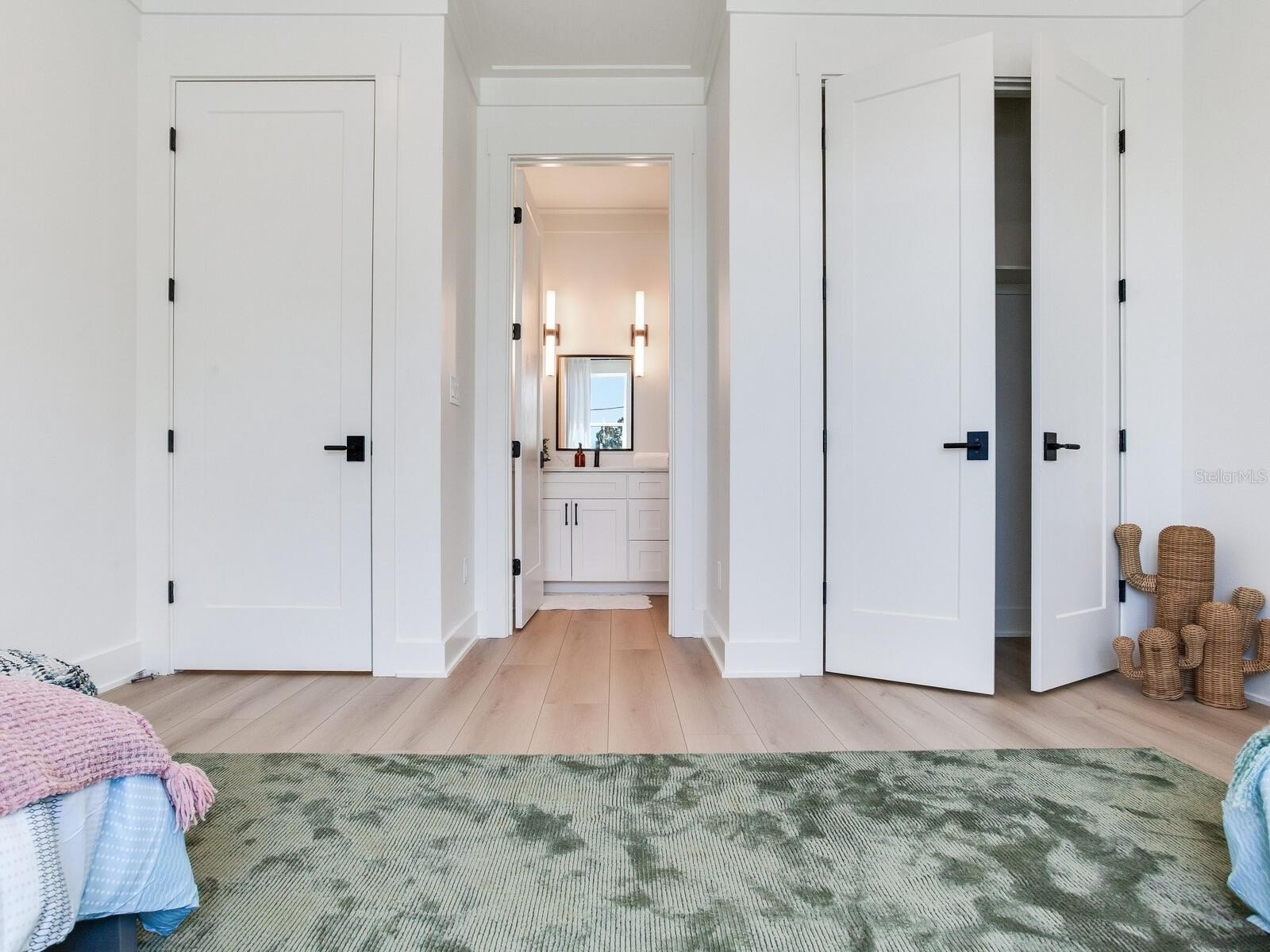 The primary suite offers a private sanctuary with direct access to the porch, an oversized walk in closet, and a spa inspired bath featuring a garden soaking tub, glass enclosed walk in shower, and elegant tile finishes. Additional bedrooms provide ample space for family and guests while maintaining privacy and comfort.