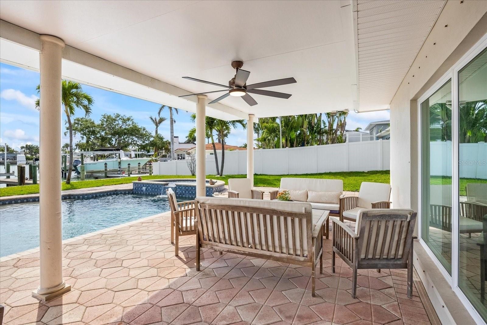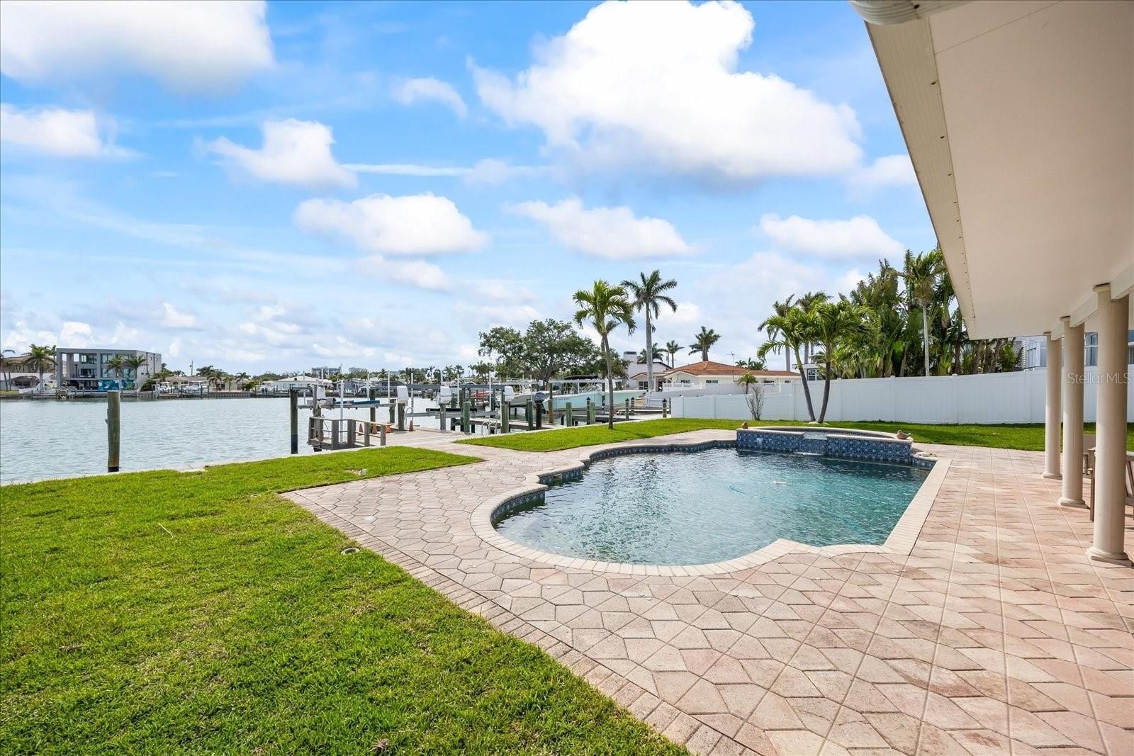 Some photos are Virtually Staged. REMODELED AND READY TO MOVE IN! ABSOLUTELY GORGEOUS! ALL NEW FLOORING DOWNSTAIRS, UPDATED KITCHEN WITH NEW APPLIANCES, DOWNSTAIRS BATHROOM REMODELED, NEW INTERIOR DOORS ON LOWER LEVEL. NEW HVAC COMPRESSOR, NEW SEWALL, THE PIPES FROM THE HOUSE TO THE STREET WERE REPLACED WITH SOLID PVC AND 2 CLEAN OUTS. PIPES UNDER SLAB WERE HYDRO-SCRUBBED, SCOPED AND CLEANED OUT. Experience the perfect blend of luxury and waterfront living in this lovely two-story colonial-style, pool home. Walk in to an oversized living room along side the office/4th bedroom, the kitchen and a spacious family room with a wood burning fireplace overlooking the beautiful water view. The fourth bedroom on the ground level can serve as a formal dining room, bedroom or office. There is a full bath with tub on the first floor. Boasting four spacious bedrooms and three bathrooms, this property features an oversized primary suite on the second floor with hard wood floors throughout, offering breathtaking views of both the canal and the beautiful neighborhood, an en-suite bathroom with a walk in shower and plenty of closet space. There are 2 other nice sized bedrooms on the 2nd level, also with hard wood floors and a hall bath with tub. This is the perfect family home! Waterfront Access: A boaters' dream with deep water, no fixed bridges, and easy access to the Gulf of Mexico. Large 13x20 boat dock with underwater dock lights, 2 dedicated boats lifts, 10,000 lbs and 4,000 lbs. New boat cradle, bunk and I beams. Deep water perfect for accommodating your sailboat. Enjoy the large 18x32 pool with spa, surrounded by an expansive patio adorned with pavers and landscaping. A new pool pump was installed post Hurricane Milton. Relax in the serene ambiance on the 11x35 covered patio with your morning coffee or your glass of wine in the evenings. The expansive yard boasts plenty of room for the family and pups to run around and play, splash in the pool, or fish off the dock. The Oversized 2 car garage has extra space for the tinkering type with a built in workshop. Need to store your boat trailer or RV? No problem you can store both here! Fenced yard with double gates large enough to park a RV or boat/trailer on both sides of house, with camper and generator outlets on both sides. There is a pool storage room for the equipment and extra storage. The property has a reclaimed water sprinkler system. The tankless instant hot water heater ensures efficiency and comfort. New siding installed on entire house prior to storms still in perfect condition! Hurricane shutters for all lower windows. This in a Prime Location! Nestled in the sought-after Yacht Club Estates, just minutes from the stunning Treasure Island beaches, vibrant downtown St. Petersburg, and all the local conveniences. Don’t miss out on this rare opportunity to own a piece of paradise! Contact us today to schedule a viewing.