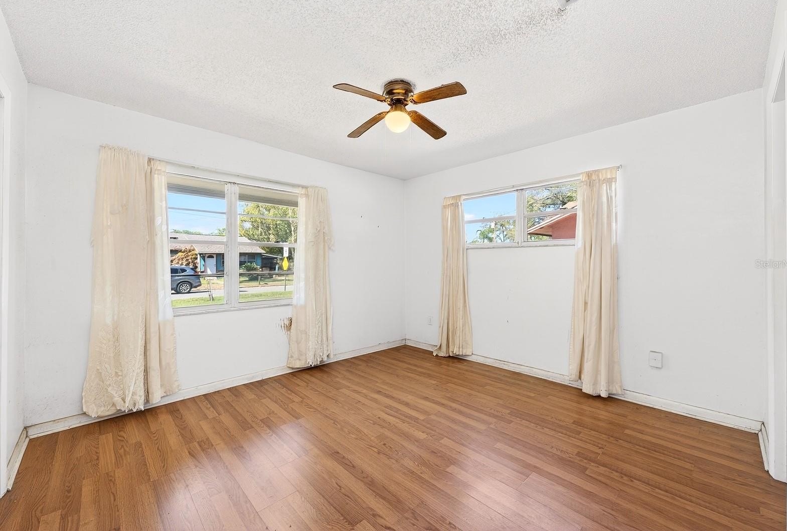 No HOA + Golf Cart District Living in the Heart of Sanford! Already done for you: NEWER A/C (2023), UPDATED ELECTRICAL (2023), and UPDATED PLUMBING – giving you peace of mind and a strong foundation in this solid 4-BEDROOM ~ BLOCK HOME in the established Sanford Park community! Set on a generous .26 ACRE LOT, this property offers a layout that lives comfortably with plenty of opportunity to personalize and make it your own. A covered front porch welcomes you inside where WOOD LAMINATE & TILE FLOORING throughout create a cohesive, low-maintenance interior. The main living area flows naturally into the dining space, where a French door leads to a large SCREENED LANAI – the perfect spot for morning coffee or relaxing evenings overlooking the backyard. The dining area connects easily to the kitchen, making everyday living and entertaining simple and functional. The SPLIT BEDROOM layout offers added privacy, with a true PRIMARY SUITE featuring its own en-suite bath and WALK-IN CLOSET, while the additional bedrooms are thoughtfully positioned at the back of the home. The EXPANSIVE BACKYARD is shaded by mature trees and landscaping, creating a peaceful setting with plenty of room for pets, play, gardening, or future outdoor upgrades. Much of the yard is already fenced and could easily be completed for full enclosure. Situated in Sanford’s sought-after Golf Cart District with NO HOA, you are just minutes from Historic Downtown Sanford, the Sanford Riverwalk, and Lake Monroe, where you can enjoy waterfront dining, breweries, festivals, and local shops. Bay Avenue Park is just up the street, offering green space and a playground, and you are conveniently located near SR 46, US-17, and the 417, as well as the Orlando Sanford International Airport for easy commuting. Zoned for “A” RATED SANFORD MIDDLE SCHOOL, this home offers excellent potential and opportunity in a great Sanford location – schedule your showing today!