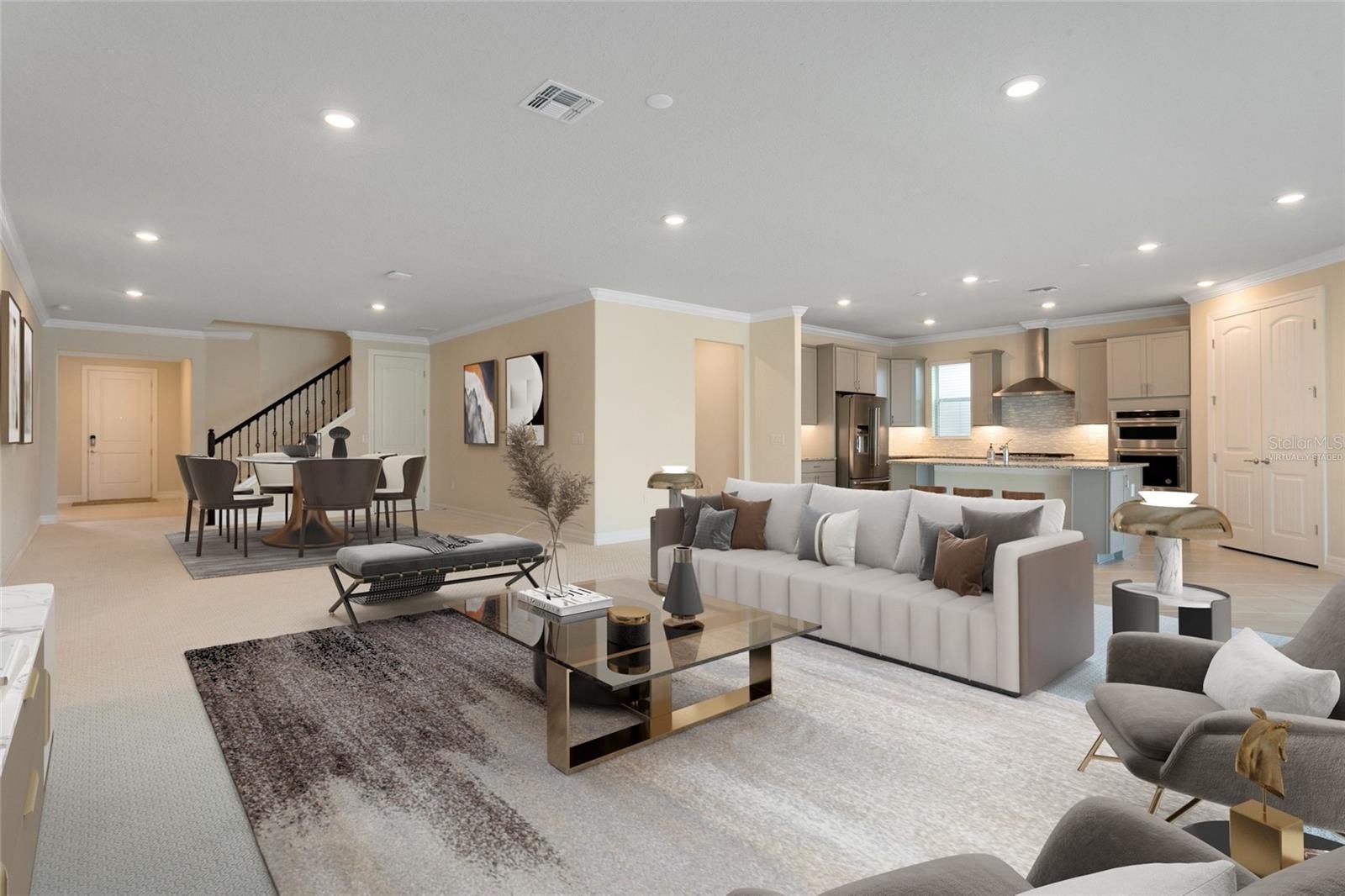 One or more photo(s) has been virtually staged. Located in the beautiful, gated community of Phillips Grove, this STUNNING home provides ample living space and a range of attractive features. An open floor plan combining your living and dining rooms creates a welcoming atmosphere, with crown molding adding a touch of traditional elegance. Your gourmet style kitchen is equipped with striking QUARTZ countertops, stainless steel appliances, a tile backsplash, and a walk-in pantry, creating a stylish and functional space for culinary endeavors. Sliding glass doors off the living room and kitchen lead to a covered lanai, allowing you to enjoy the beautiful Florida weather. The first-floor master suite is generously sized featuring a tray ceiling and an enormous walk-in closet, while the LUXURIOUS spa-like en suite bath showcases a dual quartz-topped vanity and a frameless glass-enclosed shower. The first floor includes four additional bedrooms, offering ample accommodation options, with a shared hall bath serving the first two bedrooms and bedroom three featuring a private en suite. Bedrooms five and six are located on the second floor, providing flexibility and privacy, with bedroom five including a walk-in closet and an upstairs hall bath serving both rooms. You’ll enjoy a HUGE second-floor bonus room that can be utilized as additional living space or customized to suit your needs, whether as a home theater, game room, library, or large home office. Major upgrades include brand NEW solar panels for improved energy efficiency and cost savings, along with TWO AC units providing enhanced comfort and climate control throughout the home. Residents of Phillips Grove enjoy AMAZING amenities including a clubhouse for social events, a sparkling pool for relaxation, and tennis courts for recreation and friendly competition. Located in a desirable area, this home provides convenient access to excellent local shopping and dining, including the renowned Restaurant Row, offering an abundance of vibrant culinary and retail options nearby. Overall, this home offers spacious and functional living, attractive features, energy-efficient upgrades, and outstanding community amenities in a prime location, making it an ideal place to call HOME.