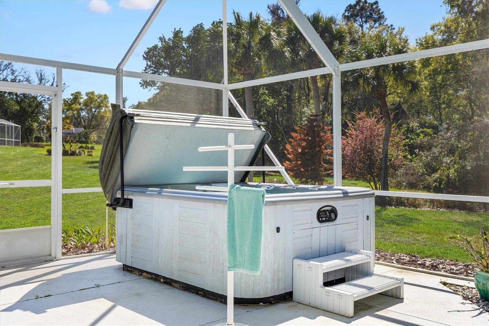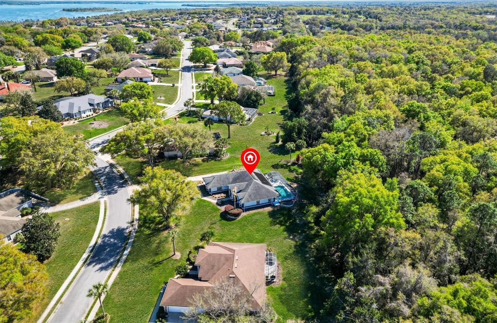 One or more photo(s) has been virtually staged. Welcome to your forever home in the enchanting retreat of HARBOR HILLS COUNTRY CLUB, a picturesque all-ages community nestled on the serene shores of Lake Griffin, part of The chain of lakes. Just a few miles from the vibrant lifestyle of THE VILLAGES, Florida, this home offers the perfect blend of privacy, comfort, and resort-style living in a truly gated community. This beautifully maintained 3 Bedroom, 2 Bath home Features a private Solar heated POOL, HOT TUB, and spacious BIRDCAGE enclosure overlooking a serene, tree-lined backyard where you can relax and enjoy the peaceful surroundings. The home has been thoughtfully updated with numerous improvements, including FULLY PAID FOR SOLAR PANEL SYSTEM installed in(2021) that power the ENTIRE home and keep electric bills remarkably low. A WHOLE-HOUSE GENERAC GENERATOR system was also installed in (2021) for added peace of mind. The KITCHEN completely remodeled in (2022) with CUSTOM CABINETRY and showcases GRANITE countertops, TRAVERTINE BACKSPLASH and STAINLESS STEEL Appliances, creating a modern and functional space for cooking and entertaining. Additional upgrades include WINDOWS replaced in (2021), TANKLESS WATER HEATER installed in (2021), WHOLE-HOUSE Pentair WATER CONDITIONING system installed in (2021), GUTTER GUARDS added in (2020), and the septic system cleaned in (2021). The HVAC system was installed in (2013) and the Roof was replaced in (2014). The garage attic features a convenient MAJIC STAIR system installed in (2019) for easy storage access. A screened Front entrance adds charm and comfort, while the backyard oasis allows you to enjoy your private pool and hot tub year-round. With golf cart-friendly streets and a welcoming, family-friendly community, this neighborhood offers a relaxed lifestyle surrounded by rolling hills and palm trees that make every day feel like a permanent vacation. Please NOTE: The walls are painted, not wallpapered. Membership in the social club and golf course are optional. Schedule your private showing today, and prepare to fall in love!
