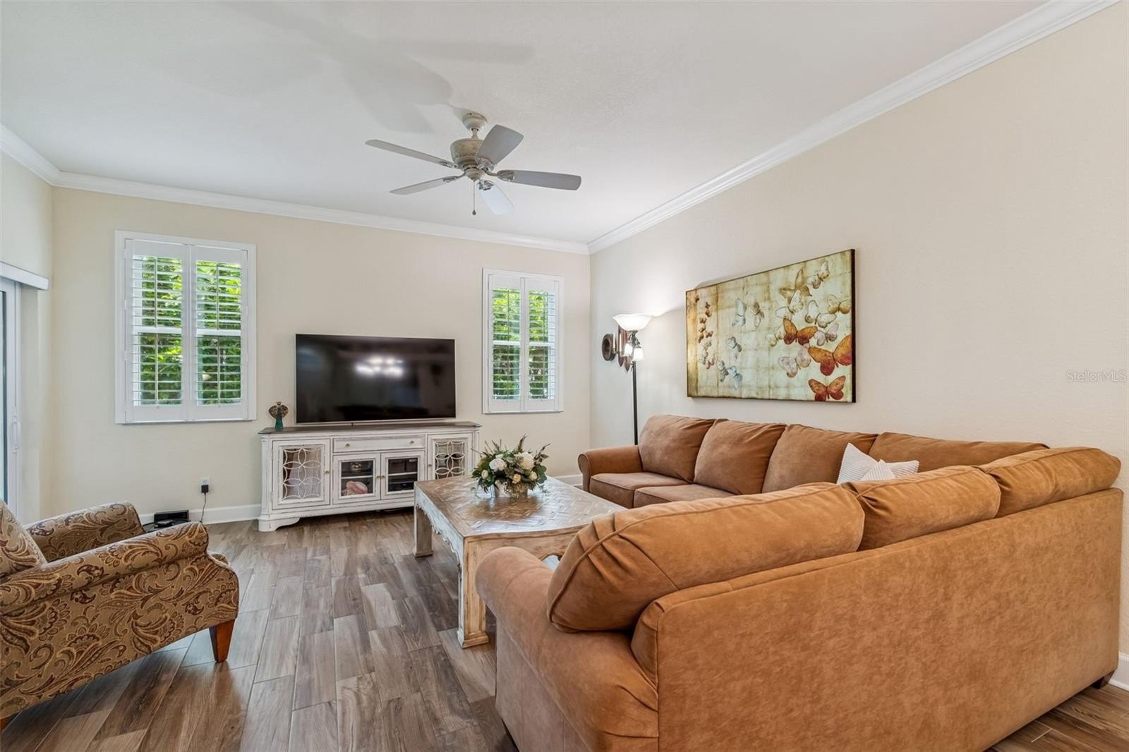 Thoughtful upgrades continue throughout the home, including plantation shutters, hurricane-impact windows, and a sliding glass door that leads to your private back patio—a quiet outdoor escape perfect for morning sunrises or candlelit evenings. ??