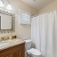 Upstairs, vaulted ceilings elevate the atmosphere even further. A versatile room with durable engineered wood flooring can become whatever your heart desires—an inspiring home office, exercise studio, or guest retreat.