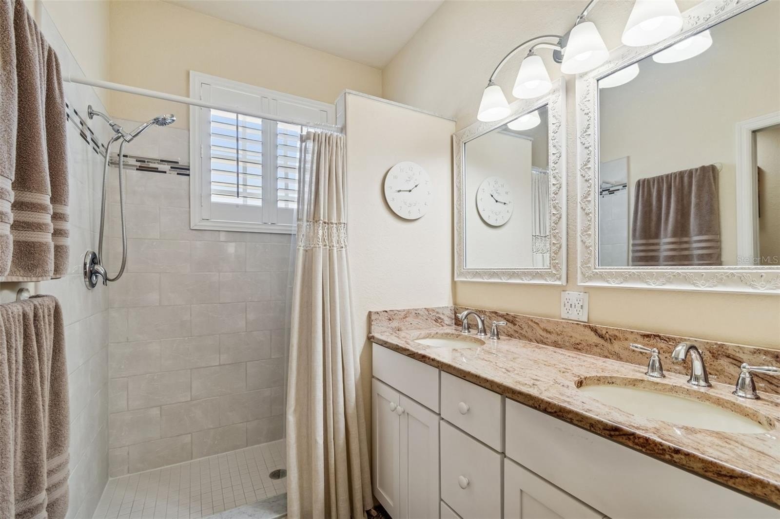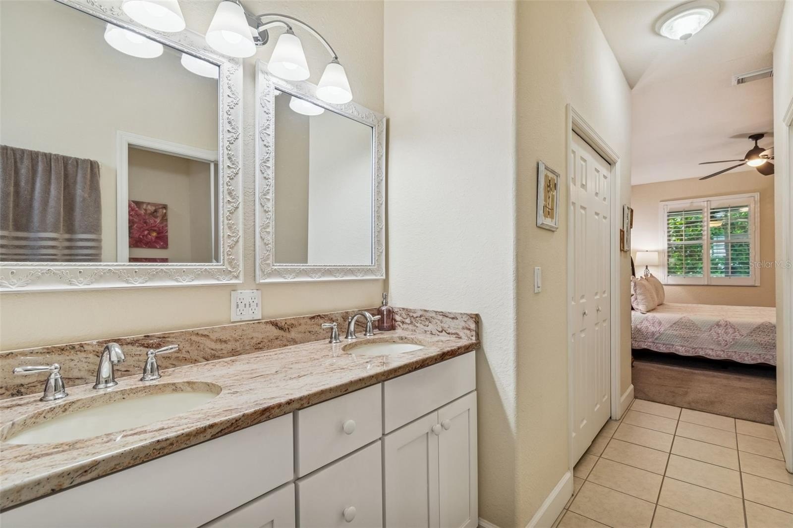 On the main level, the primary suite offers a peaceful sanctuary—an inviting place to begin and end each day. The ensuite bath features granite countertops, dual sinks, and two generous closets, creating a space designed for both comfort and ease.