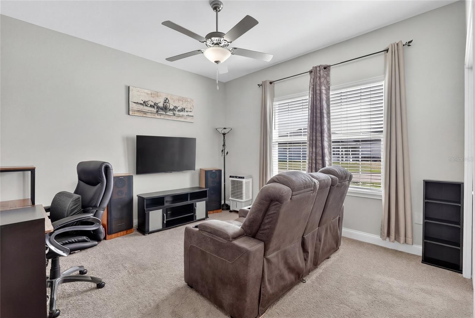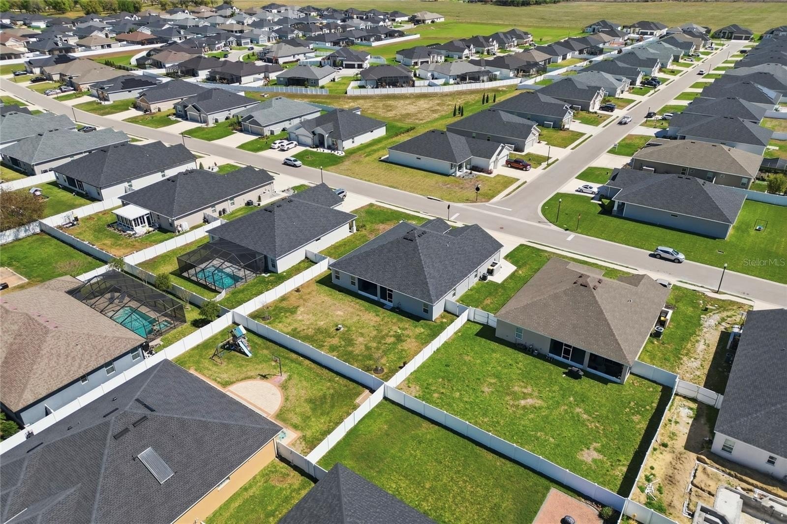 Outdoor living is just as enjoyable, with a screened rear lanai featuring a large cooling fan and roll-down shades—perfect for grilling, relaxing, or gathering with friends and family. The vinyl-fenced backyard is pool-ready and offers plenty of room for pets, play, or future outdoor additions, with direct access to the third bathroom for added convenience.