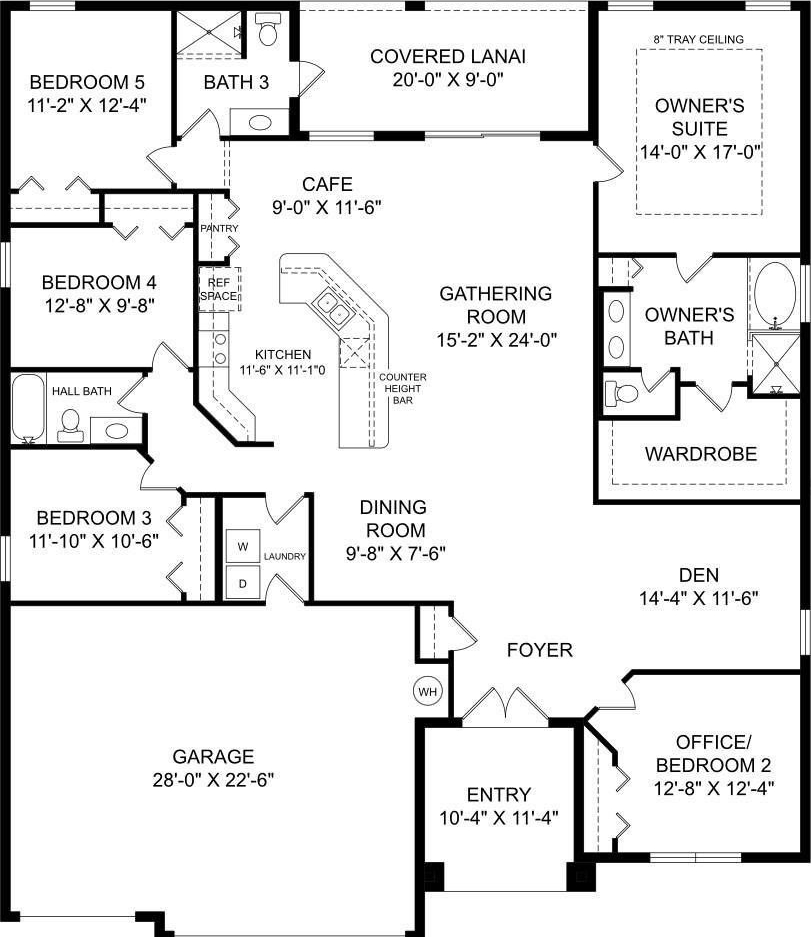 Four additional bedrooms and two more full bathrooms provide excellent flexibility. Bedroom two is currently used as a “man cave” and would make a fantastic private office. Bedrooms three and four share convenient access to a hall bath, while bedroom five is privately located toward the rear of the home and is currently used as an in-law suite with easy access to the third bath and kitchen area.