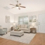 The open-concept layout connects the kitchen, dining, and living area, creating a comfortable space for everyday living and entertaining. The kitchen offers ample cabinetry and counter space, making it both functional and inviting.