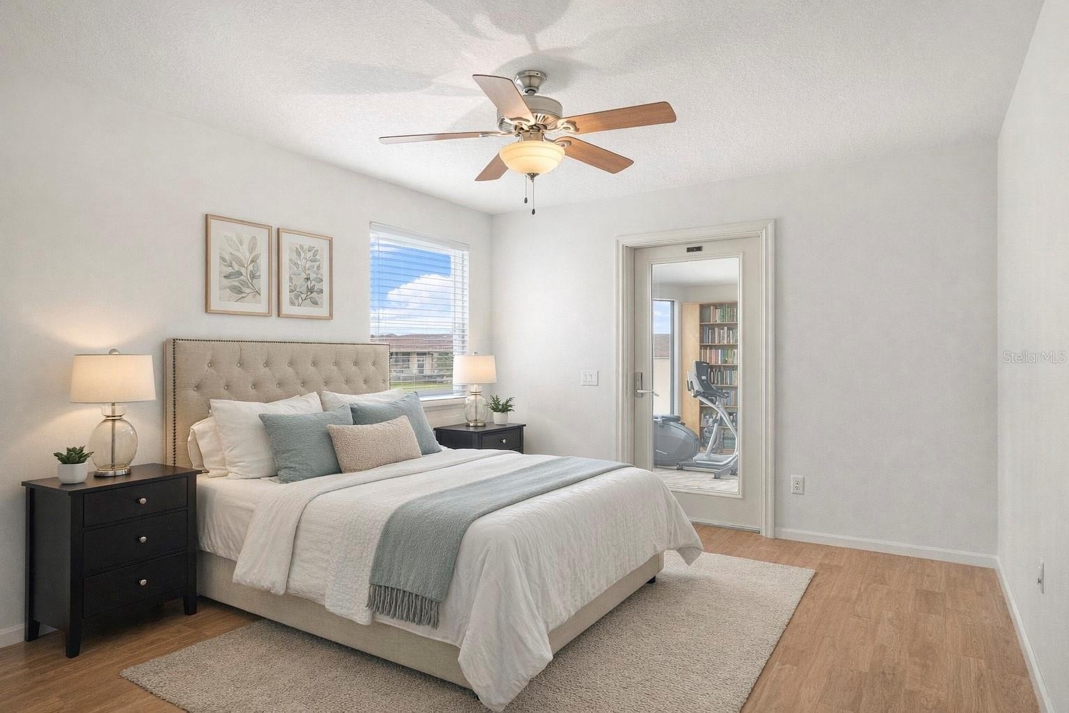 Flooring throughout most of the home features durable vinyl laminate, with linoleum in the kitchen and bathrooms.