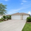 The garage offers space for two vehicles plus a dedicated golf cart bay, perfect for embracing The Villages' convenient golf cart lifestyle.