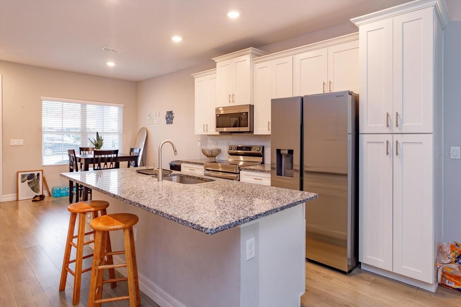 Start your mornings on the inviting front porch, the ideal spot for coffee, fresh air, and easy neighborhood conversations. Step inside to an open-concept layout that feels bright, spacious, and instantly welcoming, whether you're hosting friends or enjoying a quiet evening in. The modern kitchen impresses with granite countertops, sleek cabinetry, and generous workspace, flowing seamlessly into the main living areas. Laminate flooring throughout the main living spaces adds a clean, low-maintenance finish.