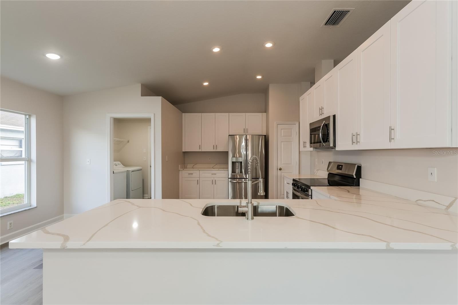 Beautifully refreshed and move-in ready, this 4 bedroom, 2 bath home features fresh exterior and interior paint, new LVP flooring, new carpet, and new light fixtures throughout. The updated kitchen offers new kitchen cabinets, new quartz countertops, and a new range, microwave, and dishwasher, creating a stylish and functional space for everyday living and entertaining. Bathrooms have been refreshed with clean, modern finishes, and a new HVAC system adds comfort and efficiency. The bright, open living areas are filled with natural light and extend to the backyard, where a screened-in swimming pool provides the perfect space to relax, unwind, and enjoy outdoor living year-round.