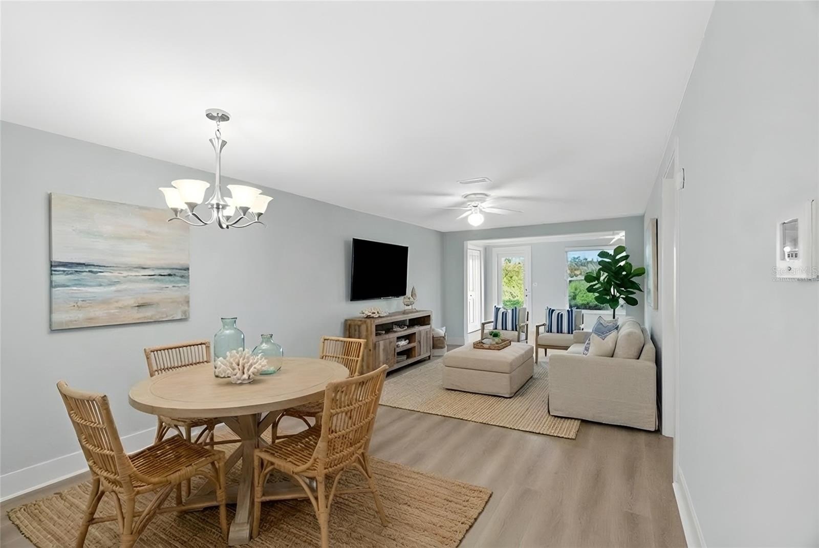 The spacious layout flows comfortably from the living and dining areas to the rear of the home, where tranquil views of the mangroves create a serene backdrop and a sense of natural privacy rarely found in condo living. As an end unit, the home benefits from additional natural light and a quieter setting within the community.