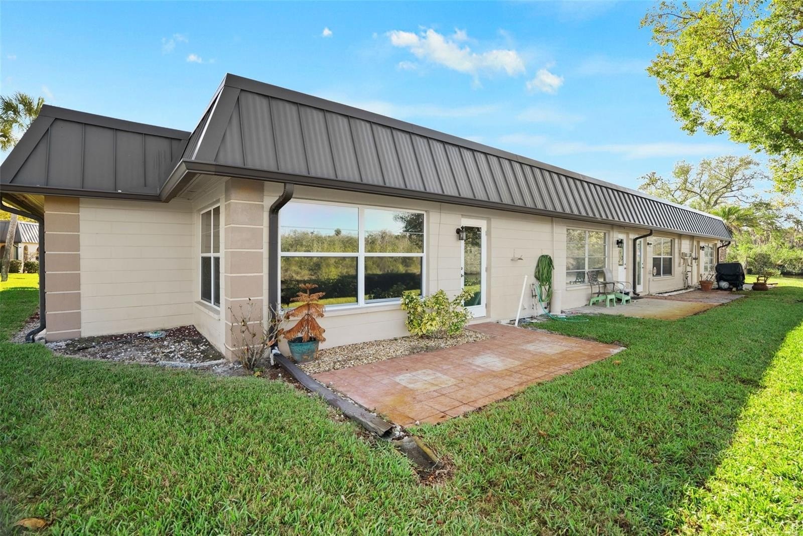 The monthly association fee provides exceptional value and includes cable, internet, water, sewer, trash service, lawn care, exterior maintenance, and pest control, allowing for low-maintenance living and peace of mind. The monthly fee even covers flood insurance!