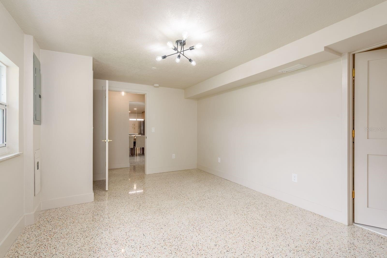 The main living areas showcase beautifully restored polished terrazzo floors throughout the entire first floor, preserving timeless Florida character while complementing the home’s contemporary updates. At the heart of the home is the new open chef’s kitchen featuring quartz countertops, solid wood cabinetry, and a layout designed for both everyday living and entertaining.