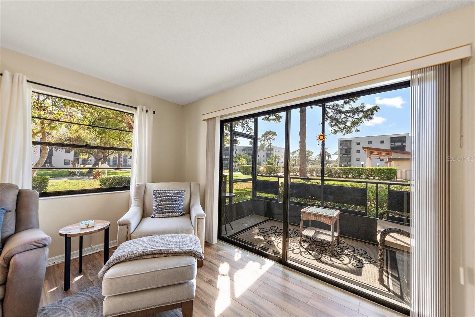 Welcome to this beautifully renovated, fully furnished turnkey first-floor corner condo with peaceful pond views in the desirable Madison Building at Terrace Park at Five Towns. This well-maintained home features luxury vinyl plank flooring, abundant natural light, and an updated kitchen with lots of cabinets and bathrooms with quartz countertops and attractive cabinetry, plus a screened-in porch perfect for enjoying the gorgeous pond view and sunsets that are spectacular. Covered parking, in-unit washer and dryer, and a short walk to one of the community’s heated pools and outdoor grilling area add convenience and comfort. Enjoy resort-style living with six swimming pools, tennis courts, shuffleboard, pickleball, and newly updated bocce ball courts, along with a full calendar of social activities including clubs, dances, yoga and stretching classes, movies, card games, and weekly food truck events. The community is enhancing its amenities through the Imagine Program, including renovations to both clubhouses and a new modern fitness center. Beautifully landscaped grounds feature peaceful walking paths, scenic ponds, and abundant wildlife, all just minutes from the Gulf beaches, shopping, dining, medical facilities, and entertainment, offering the perfect combination of relaxation, recreation, and convenience. This community is the best kept secret for nature lovers and people that want lots of activities.