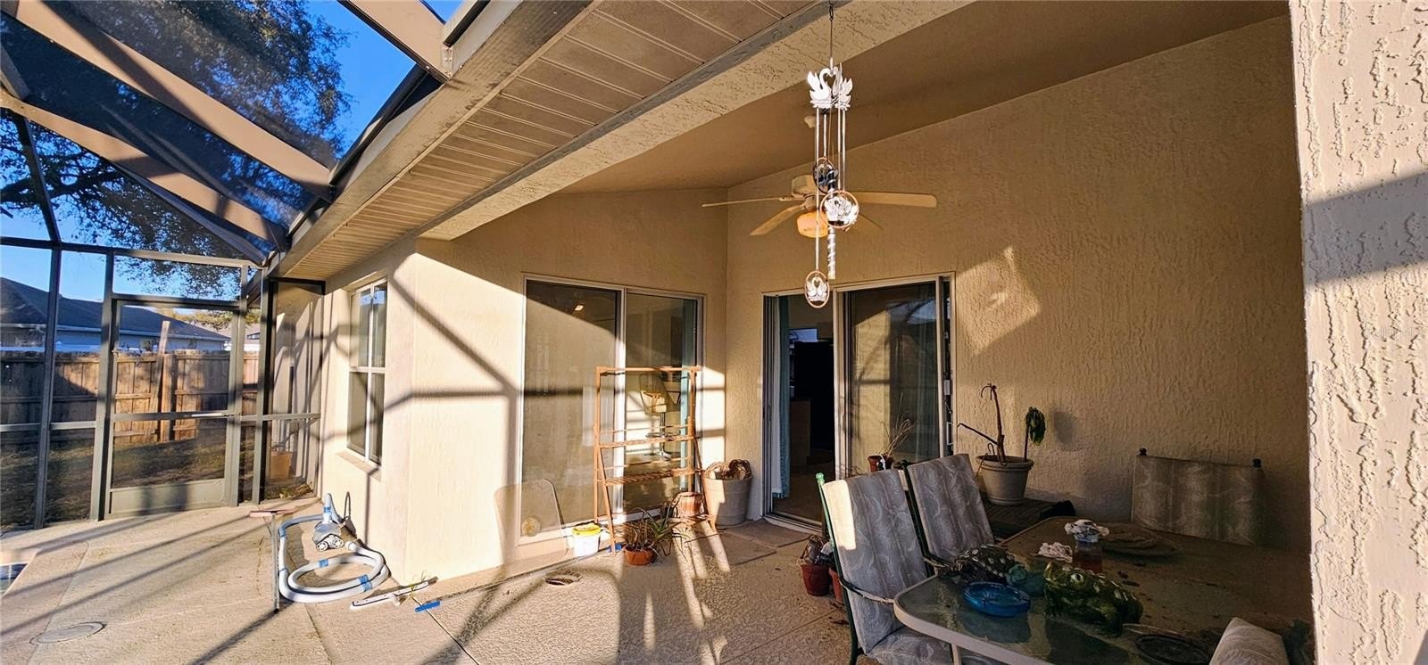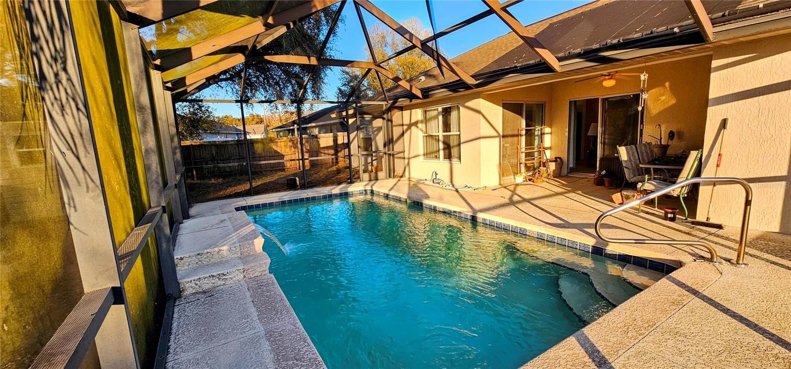 Well-built concrete block and stucco home offering an open floor plan, high ceilings, and 1,526 sq ft of comfortable living space. This 3-bedroom, 2-bath home features a master suite with an ensuite bath and a large walk-in closet. Enjoy Florida living with a solar-heated saltwater pool and screened enclosure. Recent updates include a new AC system and new water heater. Additional features include a 2-car garage with screen, wood privacy-fenced backyard, storage shed, and gutters. Conveniently located between Ocala and The Villages, offering easy access to shopping, dining, and major roadways. Home needs some TLC but has excellent potential with strong structural features and desirable amenities.