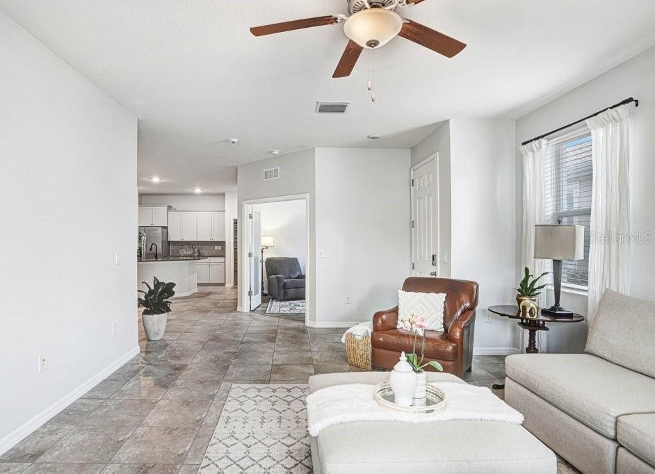 As you enter the home, you are welcomed by a bright and functional layout designed to support both relaxation and entertainment. The interior living spaces are open and welcoming, allowing natural light to fill the main areas and creating an atmosphere that feels comfortable and connected. The living room, dining area, and kitchen flow naturally together, offering a practical layout for daily life as well as gatherings with family and friends. The kitchen is designed with convenience in mind and provides ample space for preparing meals while staying connected to the rest of the home. The included appliances add to the home’s move-in readiness and make settling in effortless.