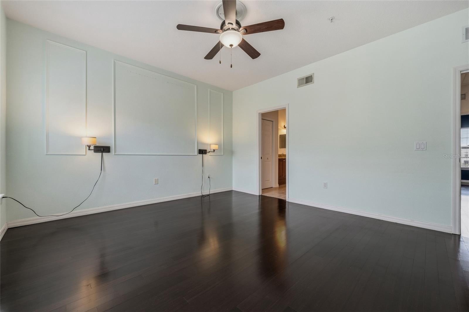 The first floor features a private bedroom with luxury vinyl plank flooring, a spacious walk-in closet, and an ensuite bathroom—ideal for guests, a home office, or multigenerational living—along with direct access to the two-car garage.