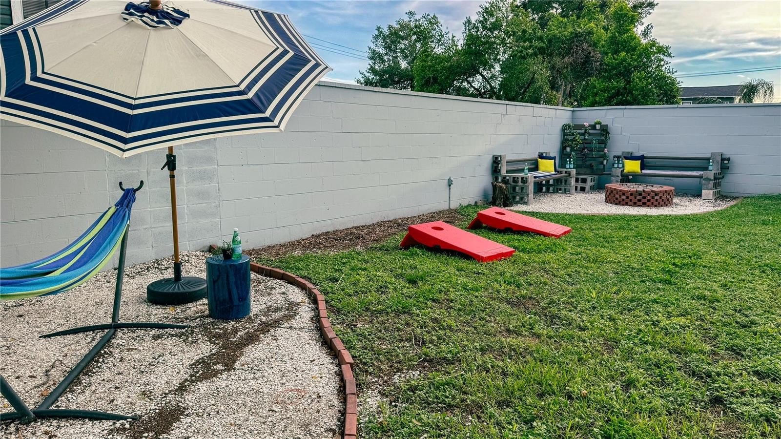 A fully fenced large back yard is complete with a custom-built-in barbecue, beverage, & entertaining area; hardscaped and landscaped with lighting to create a ideal space for friends and family to gather. Play a game of corn hole, read a book in the hammock at the far corner of the yard, or retreat to the fire pit area for campfire & s'mores. There is plenty of room to amuse yourself and your guests. Plenty of parking in the driveway for a large SUV and another car, along with 2 cars on the street in front of the house. Great location, quiet street with friendly neighbors.