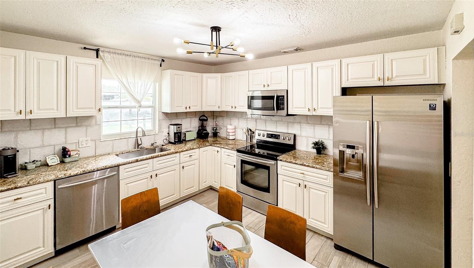 The large eat-in kitchen has enough seating for 6 easily. Granite countertops & stainless appliances keep you cooking in style. The comfortable living room has plenty of natural light, the entire home has brand new luxury vinyl flooring and porcelain tile. New stacked washer and dryer (2025) in the laundry area, a new tankless hot water heater (2025) means you will never run out of hot water! Electrical was updated throughout when purchased in 2022 along with a new roof, new patio, vinyl fence for privacy.