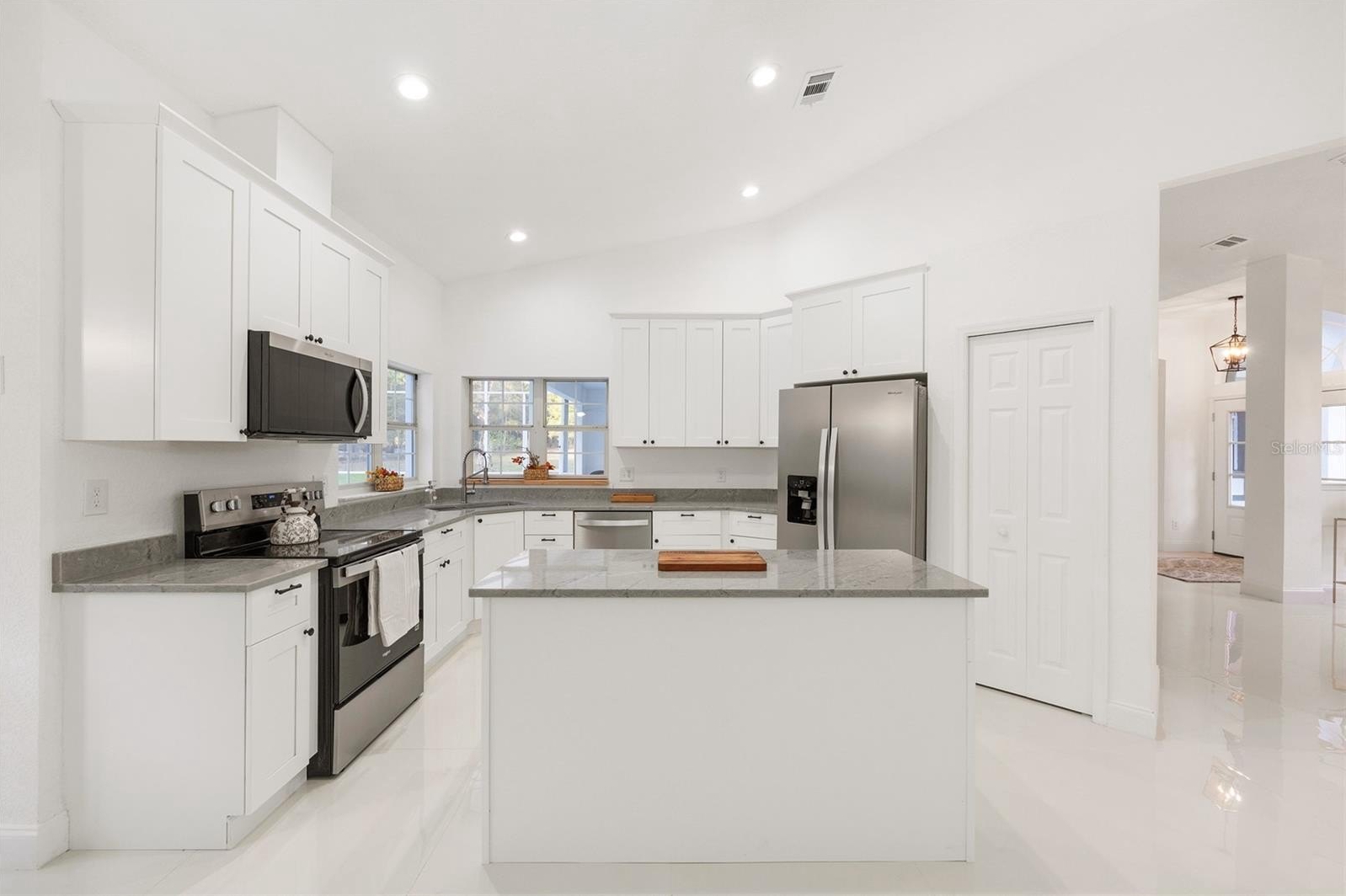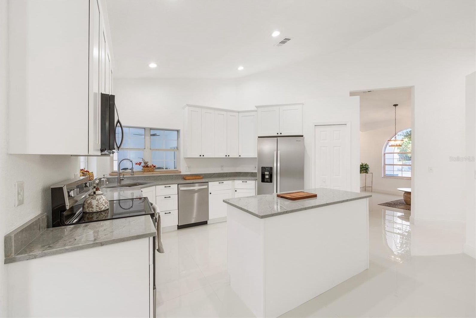 Welcome to a beautifully reimagined retreat in the heart of the sought-after Rainbow Springs Country Club Woodlands community in Dunnellon, FL. This fully remodeled 4/3/2 POOL HOME is perfectly positioned on over an acre of lush Florida landscape and blends modern elegance with the serene charm of North Central Florida living. Inside, the home offers 2,387 square feet of thoughtfully updated living space, where every detail was refreshed during the 2025 renovation. Gorgeous porcelain tile flooring flows throughout, creating a bright and cohesive feel, while the heart of the home—the kitchen—features quartz countertops, modern finishes, and ample space for gathering and entertaining. The new roof installed in 2023 adds peace of mind for years to come. The spacious layout offers comfort and flexibility for both everyday living and hosting guests, while the expansive acreage provides privacy, room to roam, and endless possibilities for outdoor enjoyment. Life in Rainbow Springs Country Club Estates is truly special. Residents enjoy access to a private community river park on the pristine Rainbow River, where crystal-clear spring waters invite kayaking, paddleboarding, swimming, and tubing just minutes from your front door. The community center offers a vibrant lifestyle with amenities including a resort-style swimming pool, tennis courts, pickleball courts, fitness areas, walking trails, and recreational facilities, creating a welcoming environment for neighbors and friends to gather. Outdoor enthusiasts will love being just about 5 minutes from Rainbow Springs State Park, one of Florida’s most stunning natural treasures known for its waterfalls, gardens, and sparkling spring waters that form the headwaters of the Rainbow River. Despite the peaceful setting, everyday conveniences are close by. Groceries, restaurants, medical services, and local shops in Dunnellon are only 5–10 minutes away, while larger destinations are easily accessible and within 20 minutes to the renowned World Equestrian Center, Historic Downtown Ocala, Three Sister Springs where you can watch the manatees in Crystal River or enjoy miles of lakes and trails between Dunnellon and Inverness. Travel with ease, as the Gainesville, Orlando, and Tampa/St.Pete Airports and beaches are within an hour to an hour and a half. This is more than a home—it’s a lifestyle surrounded by nature, recreation, and timeless Florida beauty.