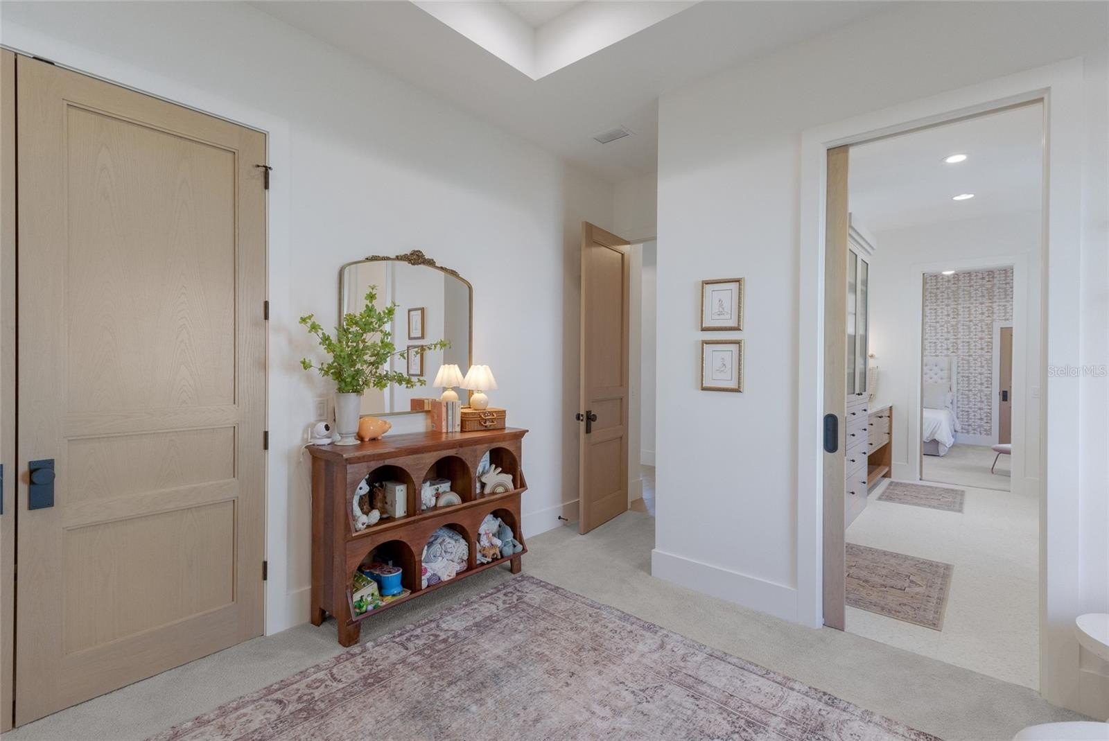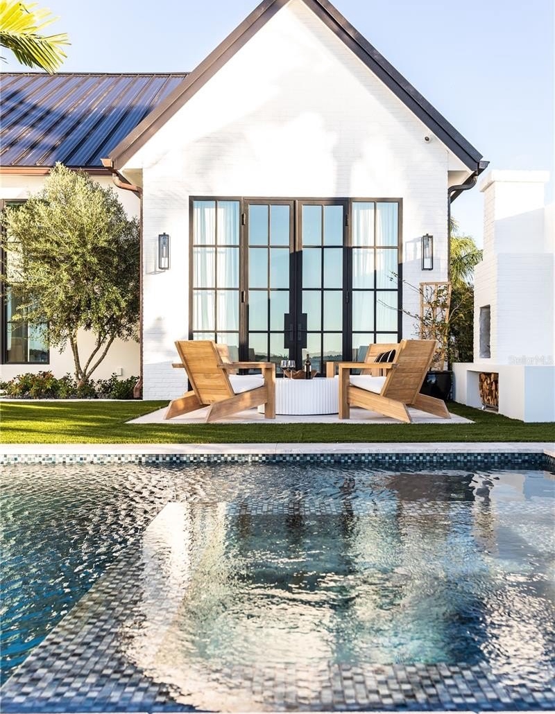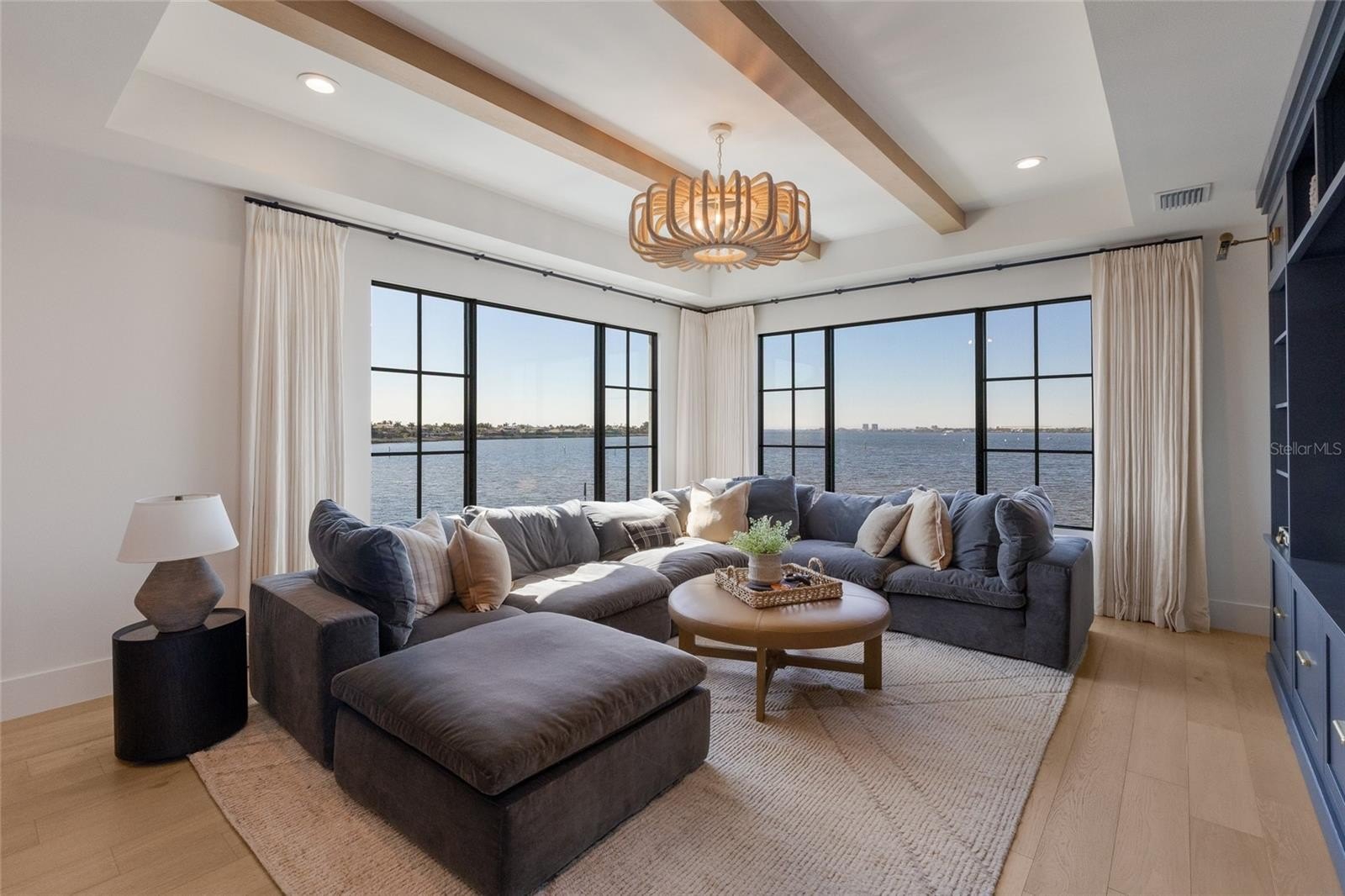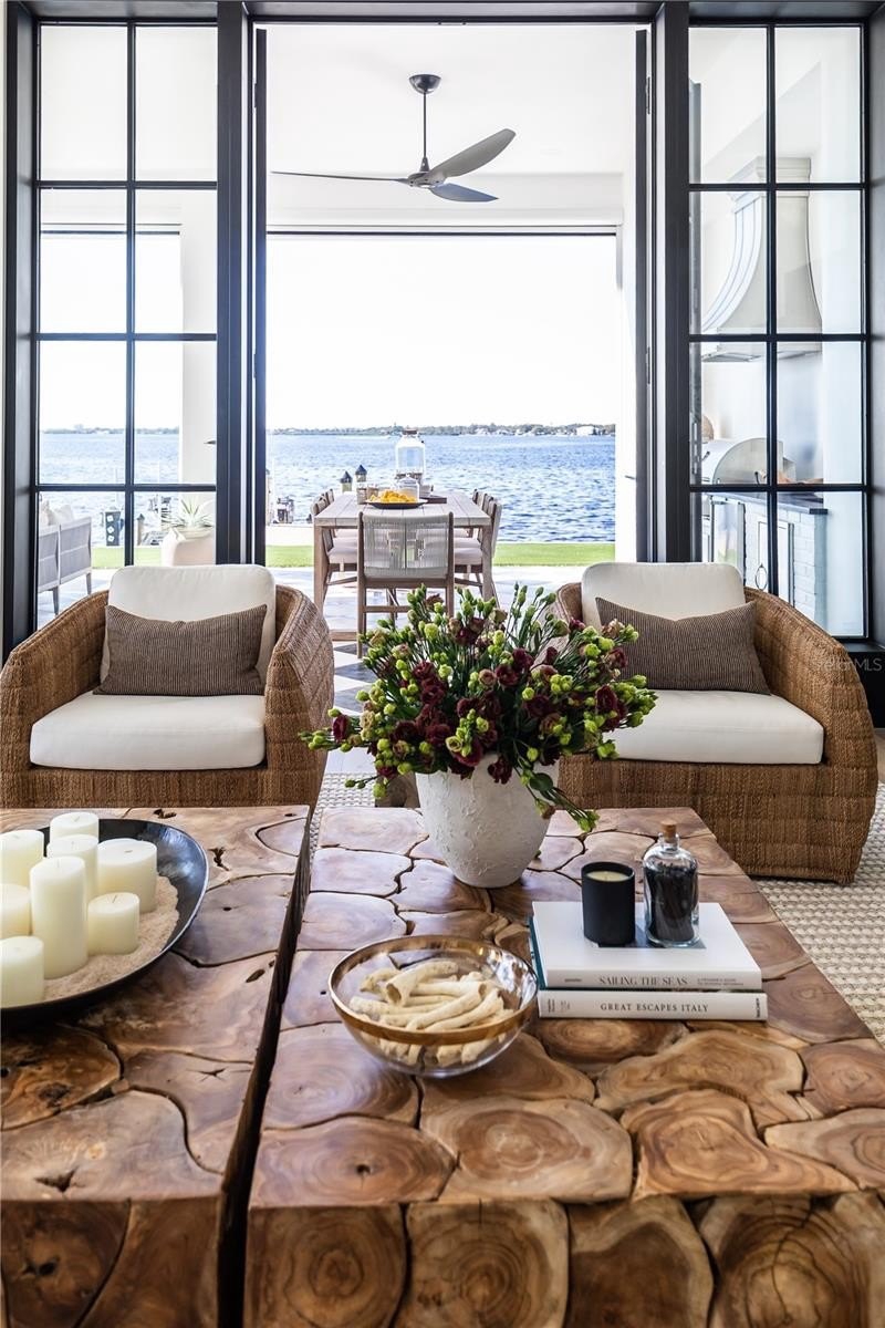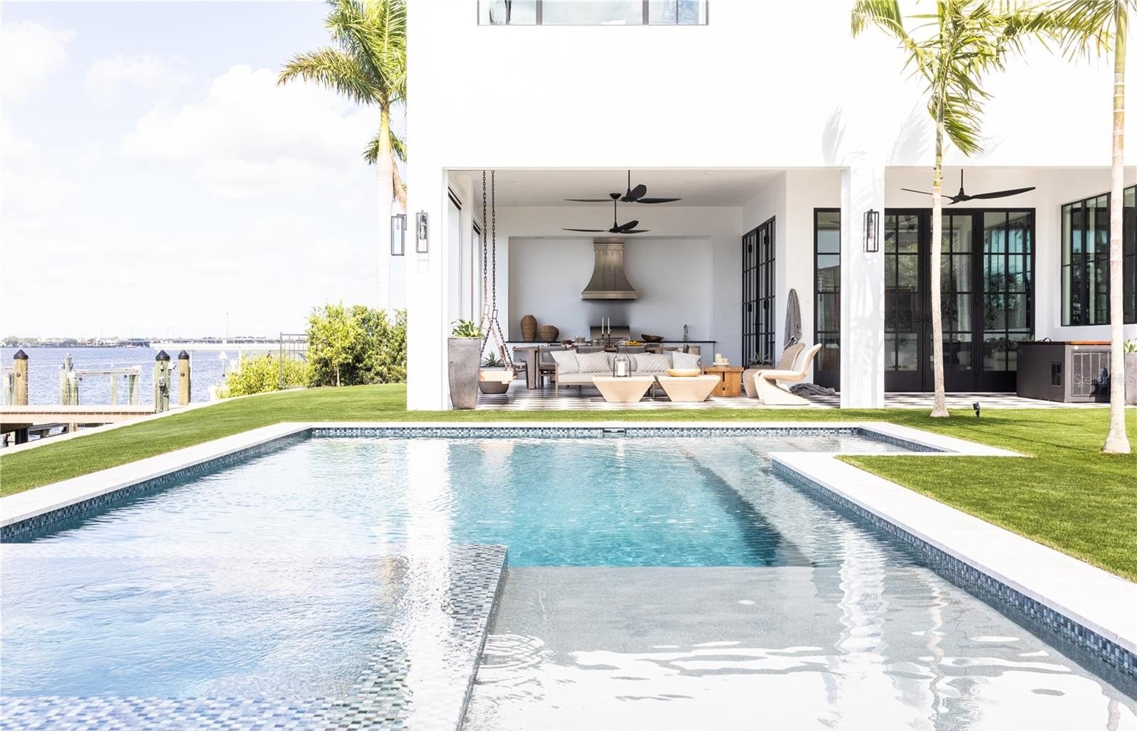 WELCOME to a breathtaking WATERFRONT masterpiece in the EXCLUSIVE double-gated BOATING community of The Reserve at Harbour Walk, where a PRIVATE deep-water DOCK on the Manatee River with direct access to the Gulf of Mexico sets the stage for a life of unmatched luxury, tranquility, and adventure. Built by CAMLIN Custom Homes, this 5,147 sq ft CUSTOM ESTATE offers 4 bedrooms plus a den or office, 3.5 baths, and a 4 car garage, all designed with a peaceful, Zen inspired aesthetic where every detail has been thoughtfully curated and flawlessly executed. A dramatic GLASS and STEEL front door opens to soaring, light-filled interiors with blue-water views that draw your eye straight through the home to the pool and river beyond. The living room is a showpiece with a custom CONCRETE GAS FIREPLACE, illuminated built-in shelving, wood beams in the vaulted ceiling, and an entire wall of oversized windows capturing the serene backdrop. The chef’s kitchen showcases custom cabinetry, MARBLE countertops and backsplash, a massive entertainer’s island with a thick granite slab, Belfast sink, seating, gold accents, and world-class appliances including a SUB-ZERO designer series refrigerator and freezer and a rare LACANCHE UL SULLY CLASSIQUE range IMPORTED from France, plus a custom pantry behind an iron and steel sliding door. The open dining area flows seamlessly for entertaining, while an additional family room with double FRENCH DOORS offers a relaxed escape to the lanai. The owner’s suite is PRIVATELY tucked away and features CUSTOM his-and-hers closets, a spa-inspired ENSUITE bath with a glass enclosed STEAM shower with twin showerheads, built-in bench, side jets, a garden tub, dual vanities, a dedicated makeup area and private lanai access beneath a tray ceiling with custom WOOD BEAMS. Two additional bedrooms share a beautifully appointed Jack-and-Jill bath with marble countertops, dual sinks, and a tub/shower combo. A STUNNING temperature-controlled wine room enclosed in iron and glass with custom cabinetry adds a dramatic focal point for entertaining. Upstairs, you will find a fourth bedroom with custom BUILT-INS, a MEDIA and GAME room with wood beams, river views, and a bespoke WET BAR with sink and refrigerator drawers, along with a flexible FITNESS AREA, a sunlit OFFICE with water views, and a full bath with an oversized glass walk-in shower and custom marble-topped vanity. The entire home is equipped with HURRICANE IMPACT GLASS for peace of mind. Step outside to your private RESORT with a pool and spa overlooking the water, a custom WOOD-BURNING fireplace with seating, a charming DOUBLE SWING, checkered-pattern lanai tile, a fully equipped OUTDOOR KITCHEN and outdoor SHOWER, creating the ultimate space for relaxation, entertaining, and unforgettable SUNSET evenings. Your PRIVATE DOCK is fully equipped with a 16,000 lb BOAT LIFT, TWIN JET SKI LIFT, and fiberglass HEAT-RESISTANT composite decking, creating the perfect launch point for boating, fishing, paddle boarding, and sunset cruises. Residents of this private enclave enjoy pickleball and tennis courts, a playground, kayak and canoe launches, and peaceful walking paths, all within a custom home community known for its LUXURY, privacy, and natural beauty. As a bonus, the JET SKIS ARE INCLUDED with a full-price offer!!! This residence is move-in ready and offers a rare opportunity to own a waterfront sanctuary where elegance, craftsmanship, and lifestyle come together in perfect harmony.