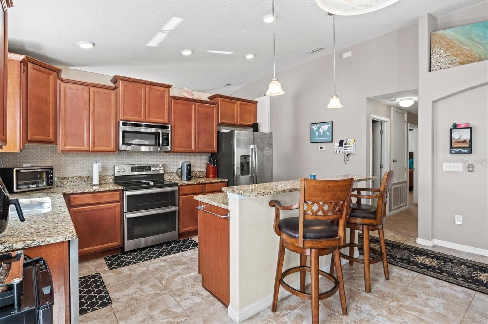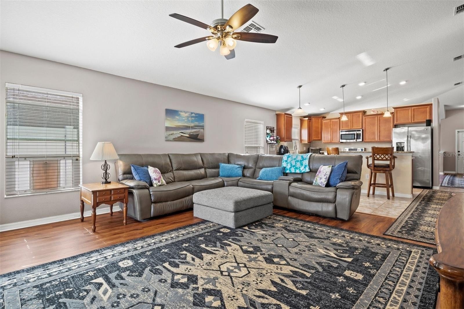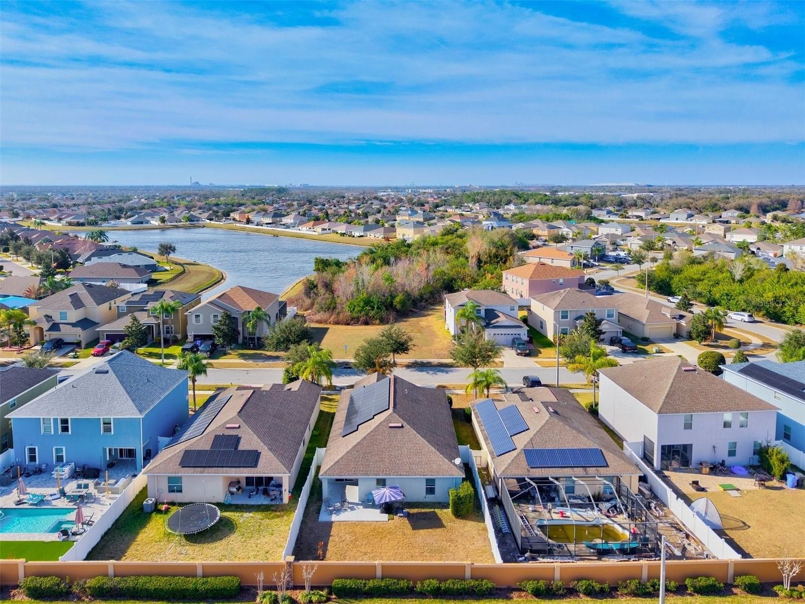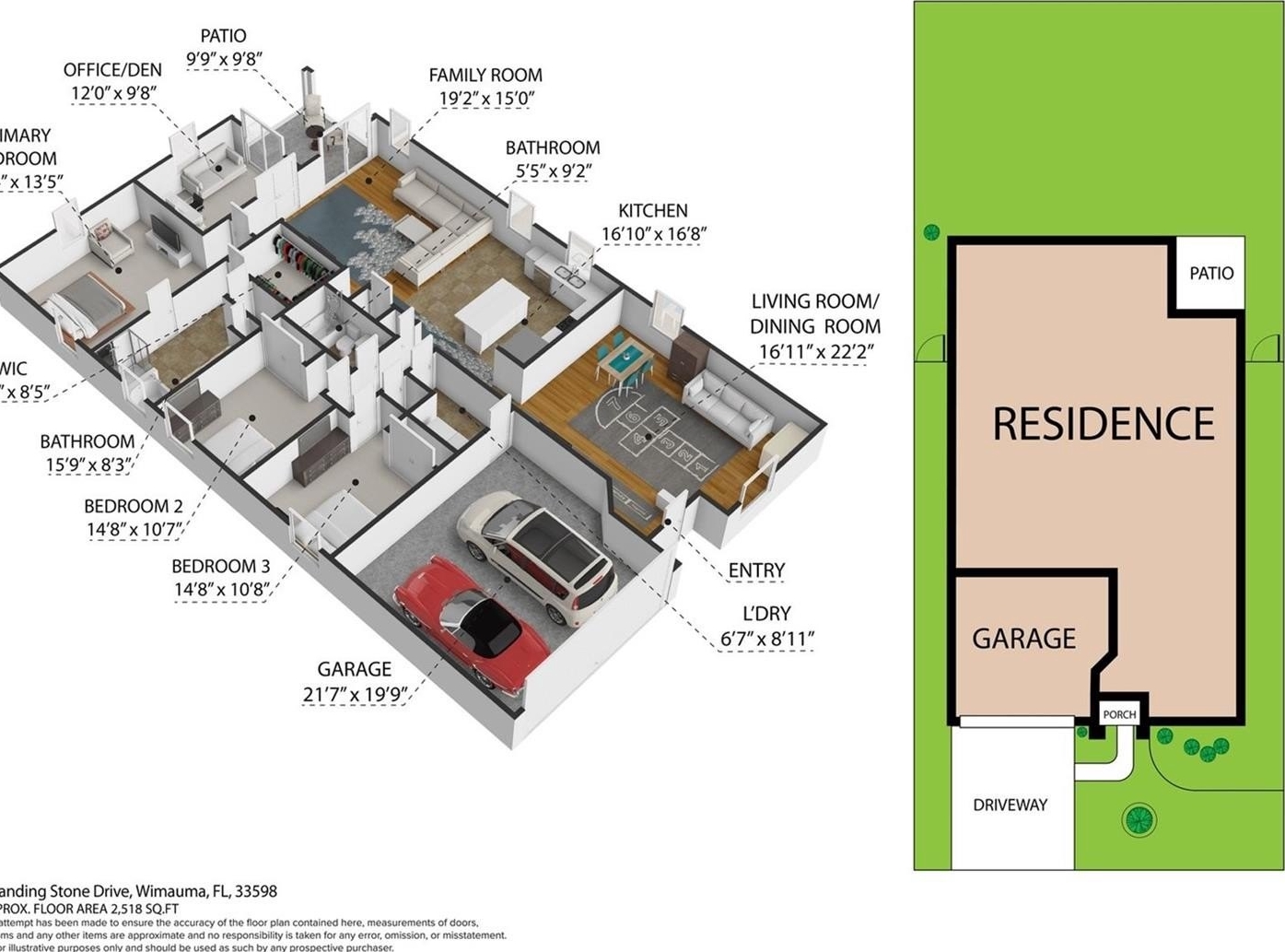Welcome to this beautifully maintained home in the sought after Highland Estates of Ayersworth. This property offers a bright open floorplan with 3 bedrooms, 2 bathrooms, plus a den/office and a two-car garage. As you approach the home prepare to be impressed by the large extended driveway which offers plenty of extra parking, brand new landscaping, a beautiful tropical Florida palm, the stone veneer, and double arches accent the entryway. From the moment you walk in, you’ll notice the souring vaulted ceilings, natural light, and tasteful upgrades throughout. The kitchen is open to the living room and perfect for entertaining featuring granite countertops, loads of warm toned wood cabinetry, large kitchen island with seating, pendant and recessed lighting, stainless steel appliances, tile backsplash, and luxury tile flooring. The spacious primary suite is located to the rear of the home offering the perfect amount of privacy and includes a large walk-in closet, dual sinks, separate tile shower, a relaxing garden tub, and a water closet. Bedroom #s 2 and 3 are generous in size and share a well appointed bathroom off the kitchen/living room. All bedrooms, the office, living room and family room all have ceiling fans installed. The home features many recent upgrades include a new AC in 2025, an additional minisplit unit added in the owner's suite, 5 foot driveway extension, a 19x9 patio extension, full home surge protection, energy efficient whole home solar panels, water softener filtration system, new vinyl flooring in the family room and the living room, new tile backsplash in kitchen and fresh paint. The office/den area and the living room both have sliding glass doors which leads out to your covered lanai and extended patio area which is the perfect spot for morning coffee or unwinding in the evenings The backyard is spacious and completely fenced. Ayersworth is a beautiful amenity rich community with a basketball court, resort-style pool, covered picnic areas, indoor clubhouse, and a playground. Conveniently located off 301 and near both I-75 and US 41 for many commuting options to local restaurants, shopping and just a short drive to the beautiful Apollo Beach.**Ask your Realtor® how you can “walk” this property from the comfort of your home using our Virtual Walk- through Interactive 3D Showcase.* Link located on MLS*