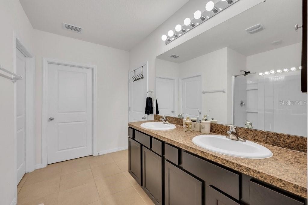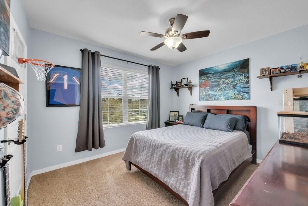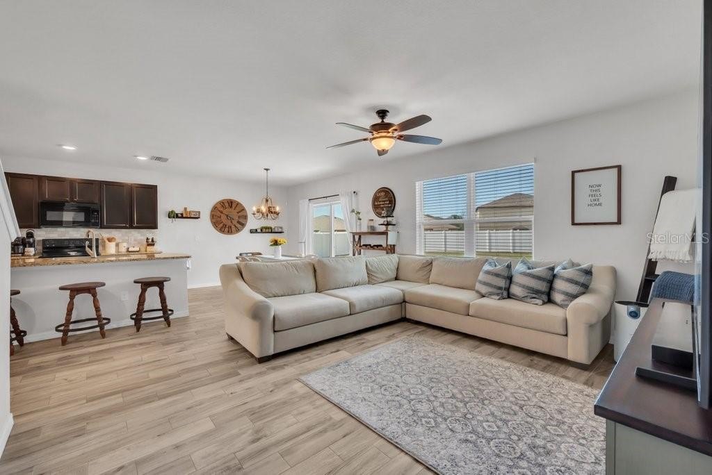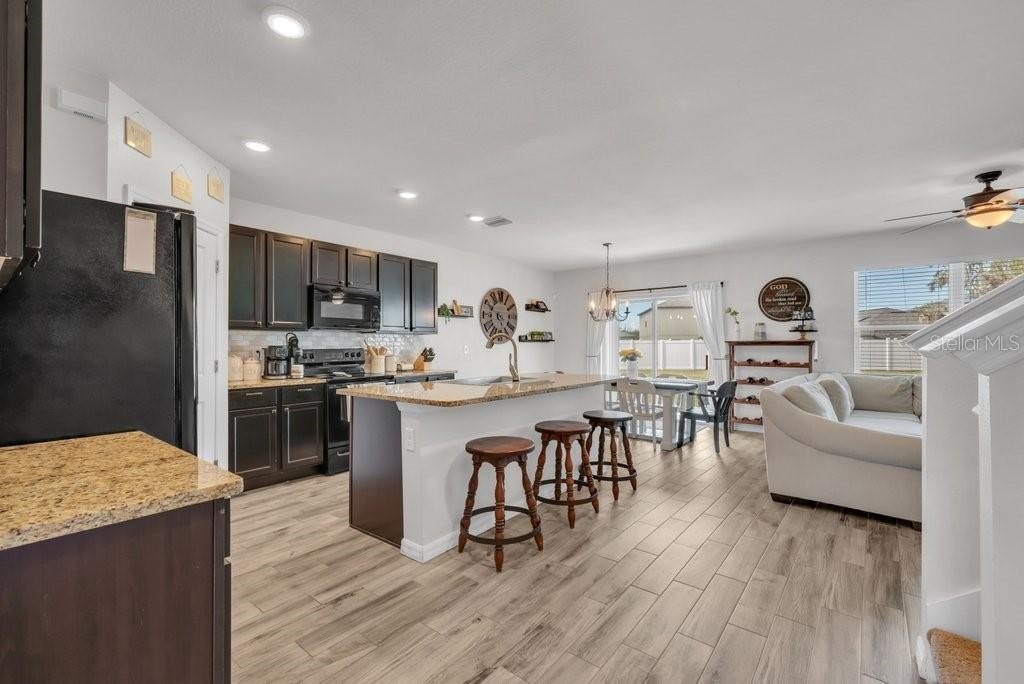 Bigger is Better – and this Backyard proves it! Why wait to build when you can move right into this beautifully maintained 5-bedroom, 3-bath home with loft and flex room featuring the popular “Hayden” floor plan. From the moment you enter through the gorgeous custom front door, you’ll notice the stylish flooring that flows throughout the main living areas. The first floor offers a bright open-concept layout where the kitchen overlooks the living and dining areas and the super-sized backyard, perfect for entertaining or relaxing outdoors. The kitchen is well appointed with granite countertops, a subway tile backsplash, stainless appliances, and a large center island ideal for casual dining and gatherings. A first-floor guest suite with private en-suite bath is tucked just off the living area—perfect for guests or multi-generational living. Upstairs, the spacious owner’s suite features dual vanities, an en-suite bath, and two walk-in closets. The second level also includes three additional bedrooms, a full bathroom, a convenient laundry room, and a versatile loft/bonus space overlooking the backyard. This home offers plenty of room for everyone along with desirable upgrades including a fully fenced yard, hurricane shutters, UltraFi internet included in the HOA, and numerous updates throughout. Located in the highly sought-after Park Creek community, residents enjoy resort-style amenities including a pool, pavilion, park, and playground, all just minutes from shopping, dining, movie theaters, schools, entertainment, and I-75, making commuting a breeze. Schedule your private showing today—this one will not last!