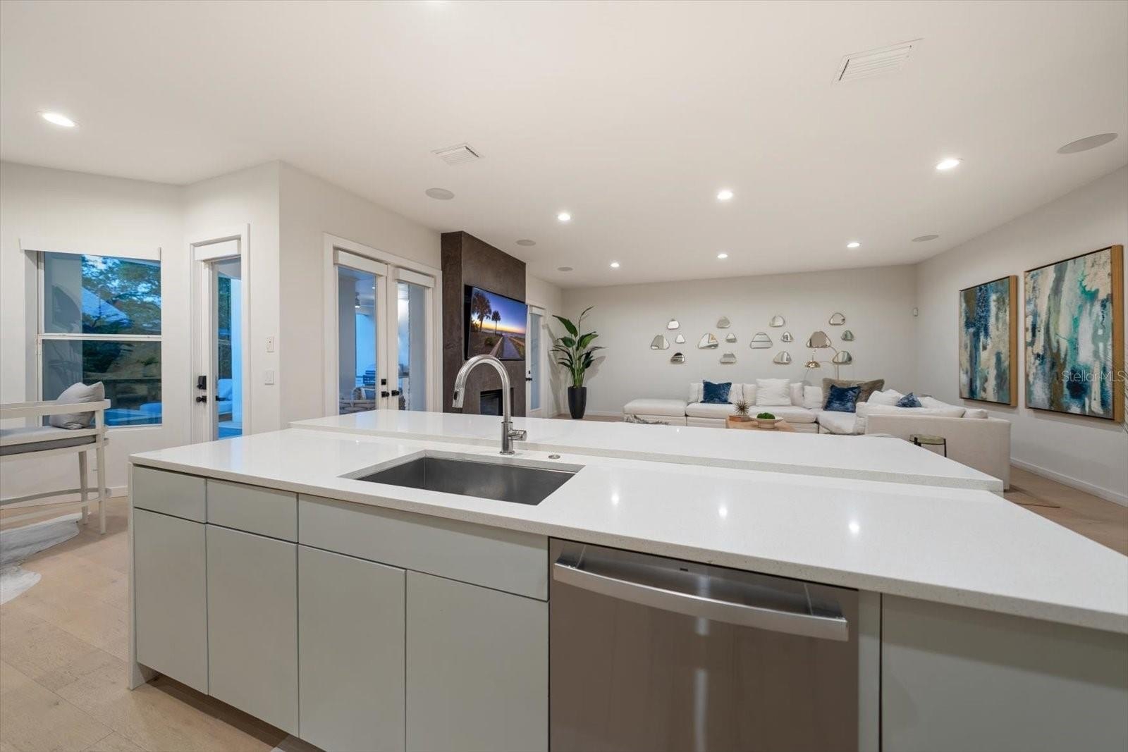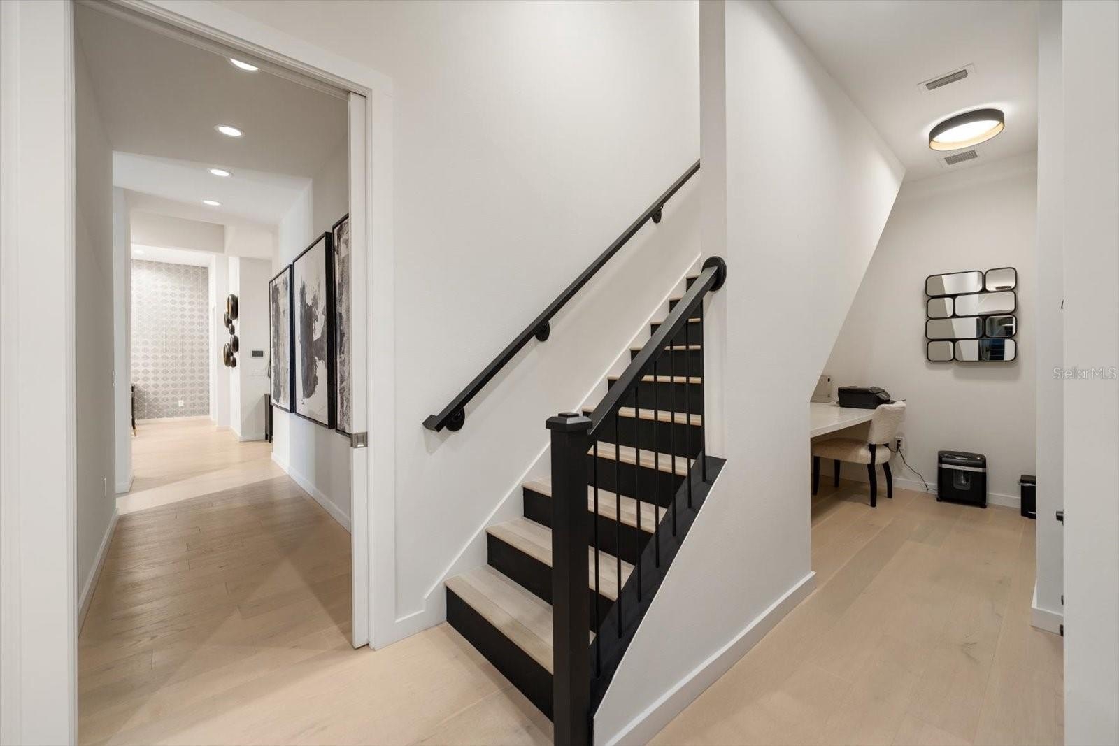This elegant home offers 5 bedrooms, 5.5 bathrooms, and a 2 car garage. This thoughtfully designed floor plan features expansive living spaces filled with natural light, high ceilings, and seamless indoor-outdoor flow. Engineered hardwood floors are consistent through the entire home with the exception of the bathrooms. The chef's kitchen offers a natural gas cooktop, open shelving, wine fridge, new quartz counters and hidden storage cabinets under the island. This kitchen opens up to the main living and dining areas, creating the perfect setting for gatherings. French doors flank each side of the double sided indoor/outdoor gas fireplace. The primary suite situated on the first floor boasts two custom built, walk in closets,large sitting area, Lutron shades and custom made curtain panels. The primary bathroom features oversized double vanities with a third makeup vanity, free standing tub and large walk in shower. Just outside the 2nd and 3rd bedrooms you will find a generous sized office/playroom with hidden study under the stairs. The second level features a spacious game/media room equipped with a wet bar sink, cigar humidor, wine fridge, ice maker and private balcony overlooking the pool. Perfect for entertaining and relaxing. This exquisite home features many upgrades such as Lutron shades on the windows, smart home technology, Cat 5 cable, quartz counters, two A/C units replaced in 2020, high end light fixtures, two tankless gas hot water heaters, electric car home charger, rebuilt hot tub and salt pool resurfaced and tiled in 2025. With its modern design, prime South Tampa location, luxury pool home lifestyle, this property offers the perfect combination of comfort and convenience.