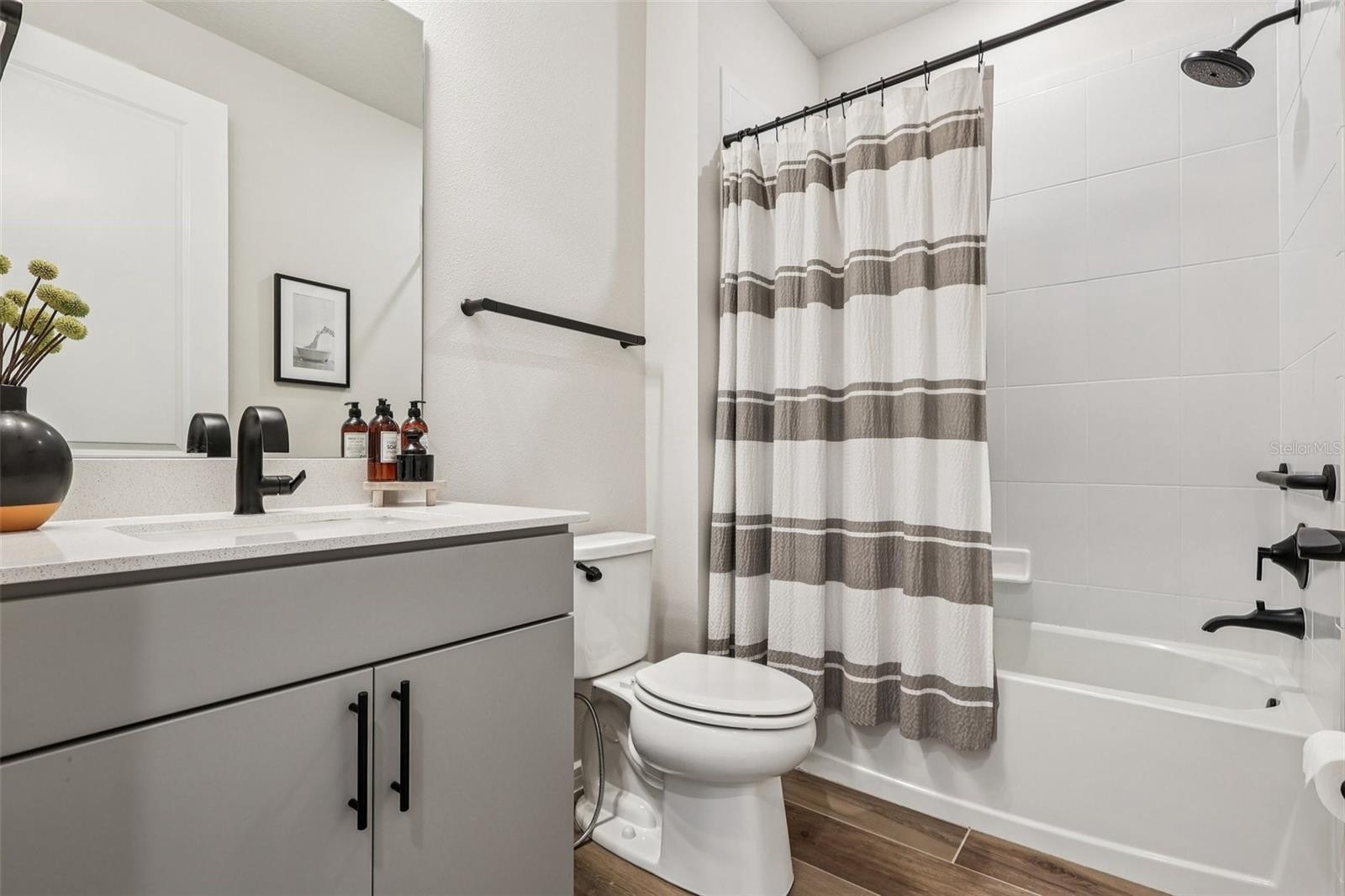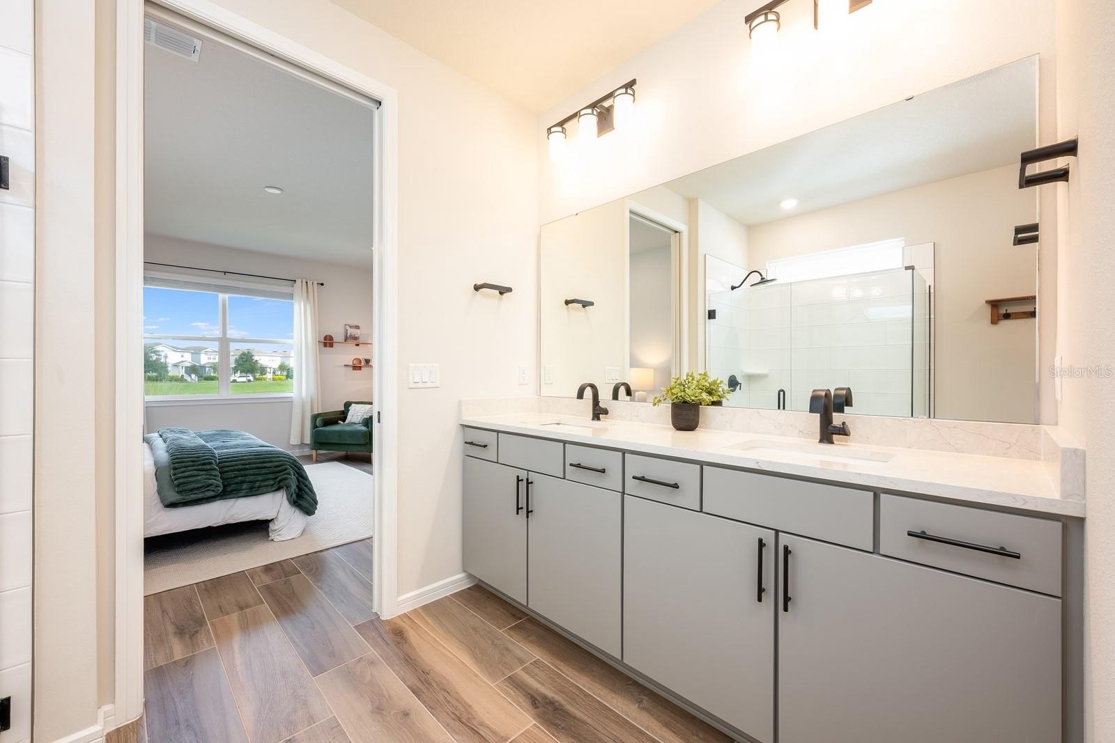inside to a light and bright **OPEN CONCEPT** layout adorned with OVERSIZED WOOD LOOK TILE flooring, a fresh modern take on neutral color palette, and designer lighting and fixtures that create an undeniable stylish ambiance throughout. The chef’s dream kitchen is a true showstopper– featuring sleek QUARTZ COUNTERTOPS, gas cooktop, under cabinet lighting, built-in wall oven, and TOP OF THE LINE APPLAINCES, including a Samsung Bespoke four door French door refrigerator with Family Hub. The striking cabinetry and finishes are both elegant and timeless. You will enjoy indoor/outdoor living with a SCREENED LANAI overlooking the peaceful pond, and a pre-plumbed gas line ready for your dream Summer kitchen or grill setup. The HOA even takes care of the front yard landscaping making it easy to relax on the weekends and maintain CURB APPEAL year-round. This energy efficient **SMART HOME** comes fully loaded with a whole home **SOLAR SYSTEM** (Will be paid off at closing!), providing annual energy credits even while powering your A/C and EV CHARGING daily. The garage is where you will find the dedicated EV charging station, and the TANKLESS WATER HEATER ensures endless hot water with maximum efficiency. Built for the future, this home includes: Surround sound system with 5 ceiling speakers | CAT6 ethernet and telecom ports in multiple locations | TV media wall port in the family room w/ interconnect in-wall wire chase tube | Extra wireless router pre-wiring in kitchen and garage | Smart home features for added convenience | Maytag washer/dryer with WiFi capability. The concrete block construction, HURRICANE RATED ROOF, soundproof and storm-resistant windows, and wired ADT alarm system provide top-tier safety and durability. All this is located just one block from the **RESORT STYLE COMMUNITY POOL & AMENITIES**, and only minutes to Laureate Park, Medical City, **TOP-RATED SCHOOLS**, restaurants, and shopping – yet you are tucked away in a serene, quiet setting. Community perks include: Gated access, front yard maintenance, cable/internet, fitness center, tennis and basketball courts, pickleball, splash pad, playgrounds, and miles of peaceful sidewalks. **PREMIUM LOT. HIGH-END UPGRADES. ENERGY SMART LIVING** – this is more than a home – it is a lifestyle curated for comfort, luxury, and location. Call today to schedule your tour and let us say WELCOME HOME! **Seller may consider buyer concessions if made in an offer**