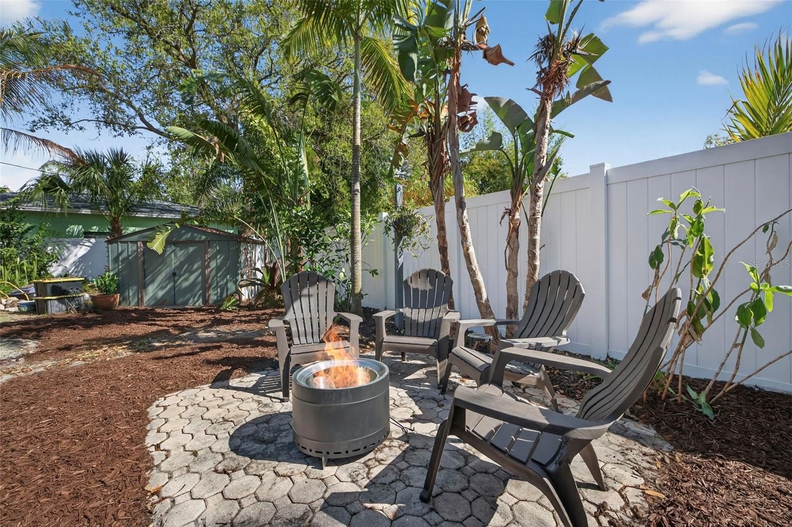 To make the most of your outdoor living, you have a screened-in porch, mature landscaping which includes 20 different palm trees, two oak trees, birds of paradise, travelers palms and bamboo, a Fire Pit and Storage Shed. There is a large gate that allows for easy Boat or RV backyard parking.