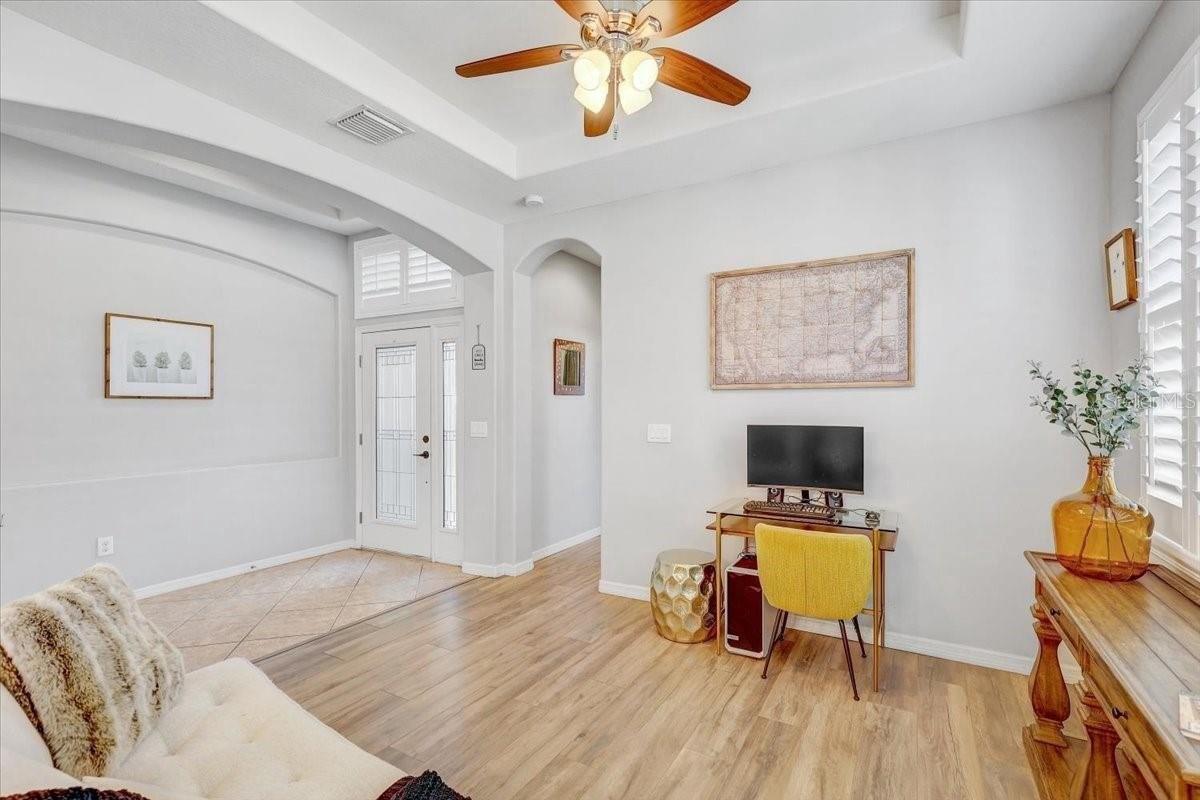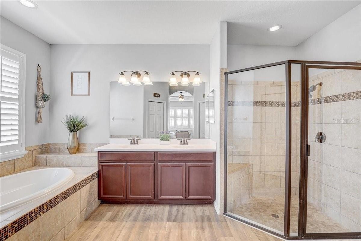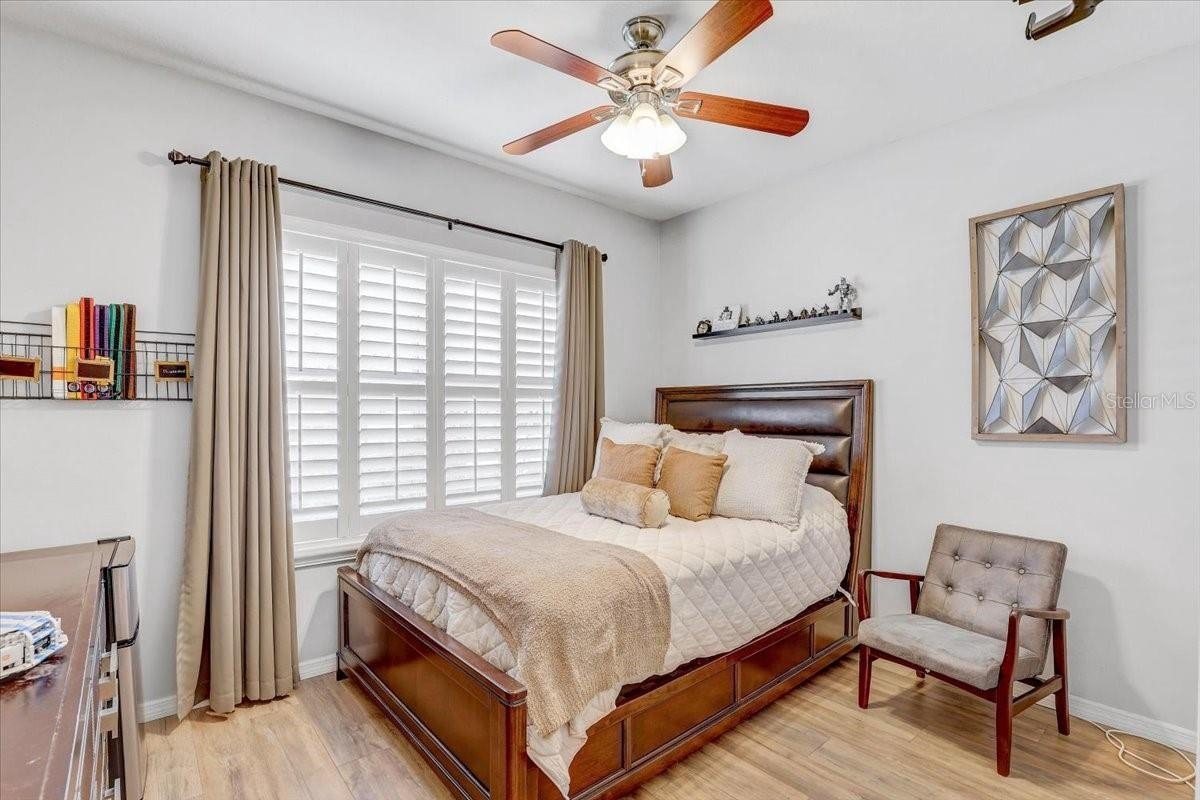 STUNNING PRIVATE POOL HOME! NEWLY INSTALLED IN 2022! Welcome to Channing Park! This desirable floorplan features 4-bedrooms, 3 full bathrooms, 3 Car Garage, and a 3-way split floor plan. Step inside, into an open foyer with a formal dining room and living room near the entryway. One of the bedrooms is privately located near the front of the home, perfect to use as a guest suite with its own full bathroom. The home has Plantation Shutters, Upgraded Tile Flooring in all the bedrooms/ensuite bathroom, and a Lighted Tray Ceiling Center Hall Rotunda! The remodeled kitchen has many appealing upgrades, with Granite Countertops, Modern glass BESPOKE appliances, Center Island, Spacious Seated Breakfast Bar, Cabinets with Crown Molding, and a Gorgeous Backsplash. The Primary suite offers a peaceful escape with Tray Ceilings and Dual Walk-in Closets, with an ensuite bath, complete with a Garden tub, Separate Tiled Walk-in Shower, and Double Sink Vanity. From your Great Room, you have sliding glass doors leading out to your Screened Lanai with Pavers and a covered porch area for grilling, outdoor dining, and lounging. Let's not forget the caged Private Pool with a Sun shelf and Waterfalls! Zoned for all A rated schools! Channing park features resort style amenities; Basketball court, two dog bark parks (One for large and one for small dogs), Soccer field, playground, clubhouse, Community Pools, Spa, Waterpark/Splashpad, fitness Center, grilling stations, skateboard park, and walking trails. Call today to schedule a private viewing!