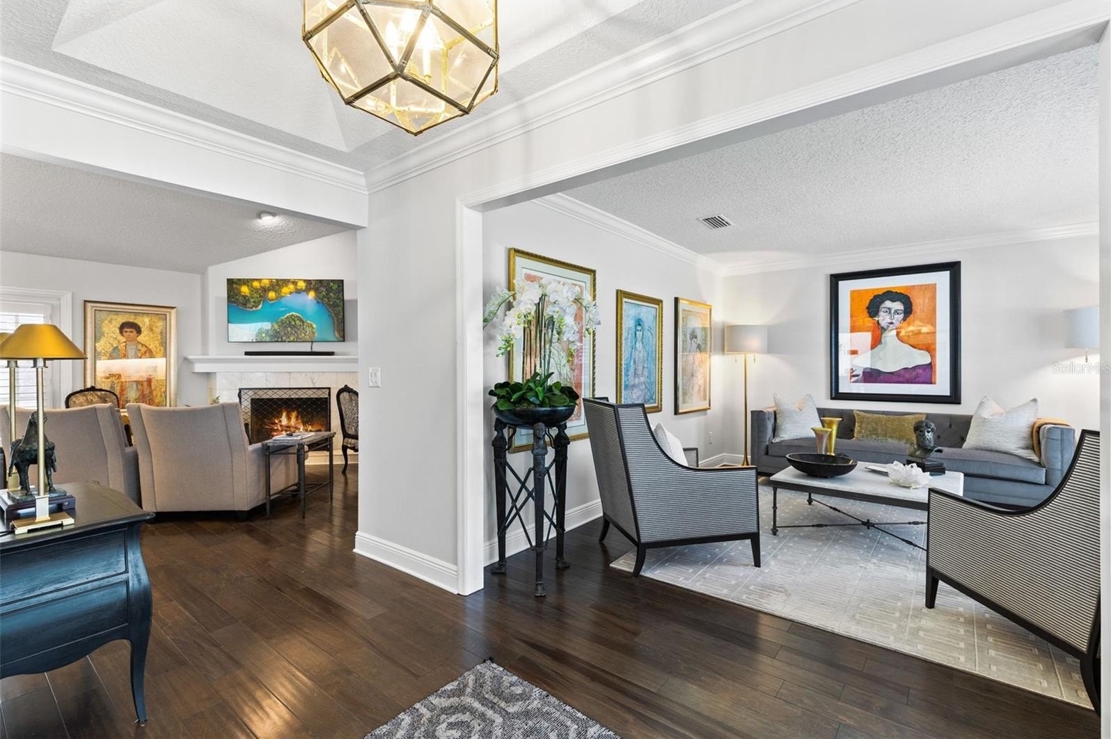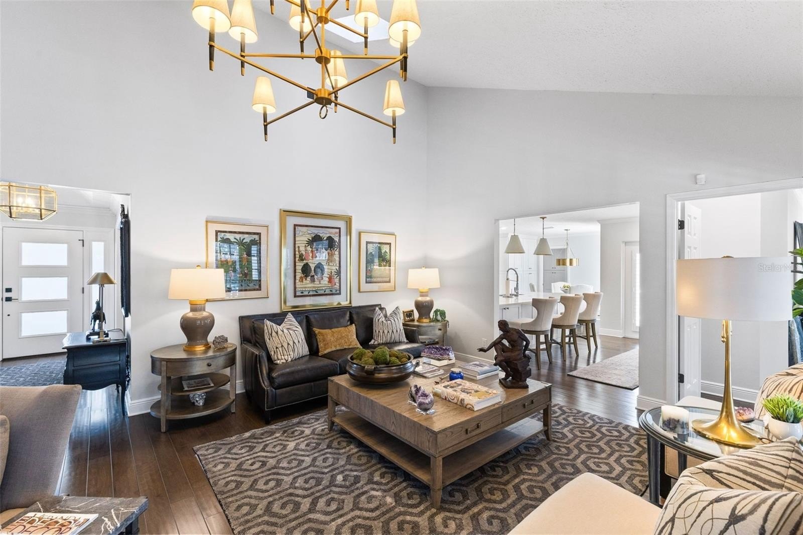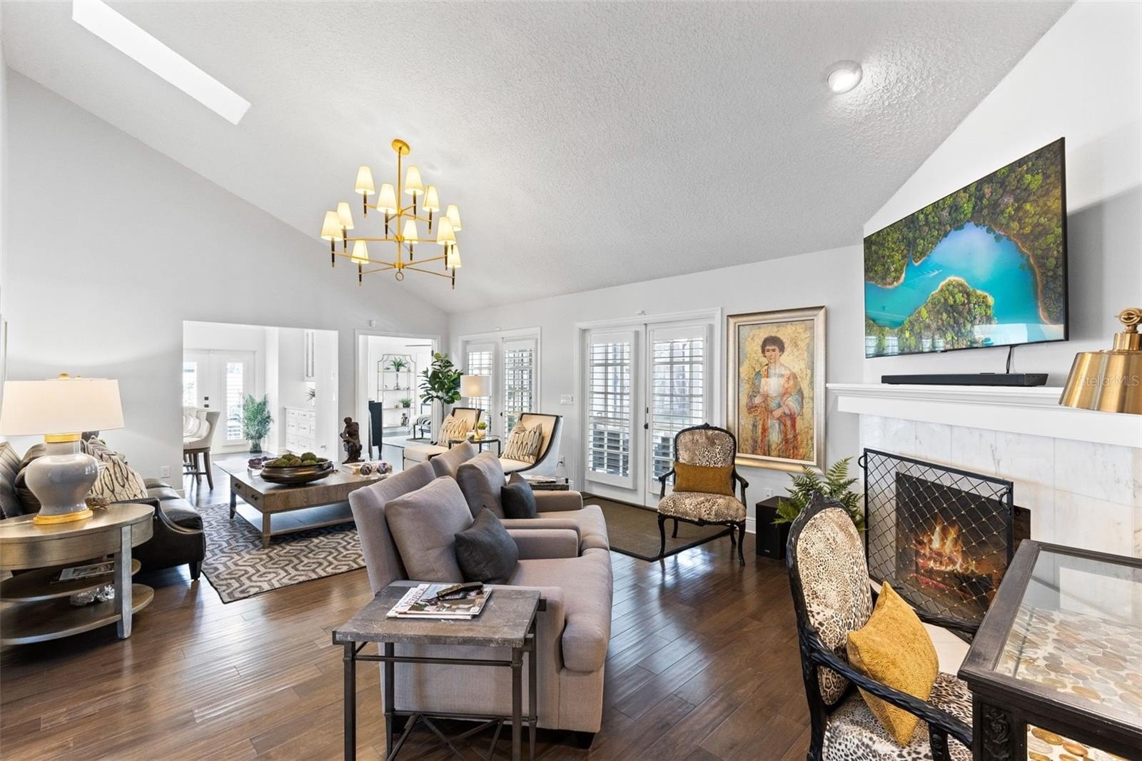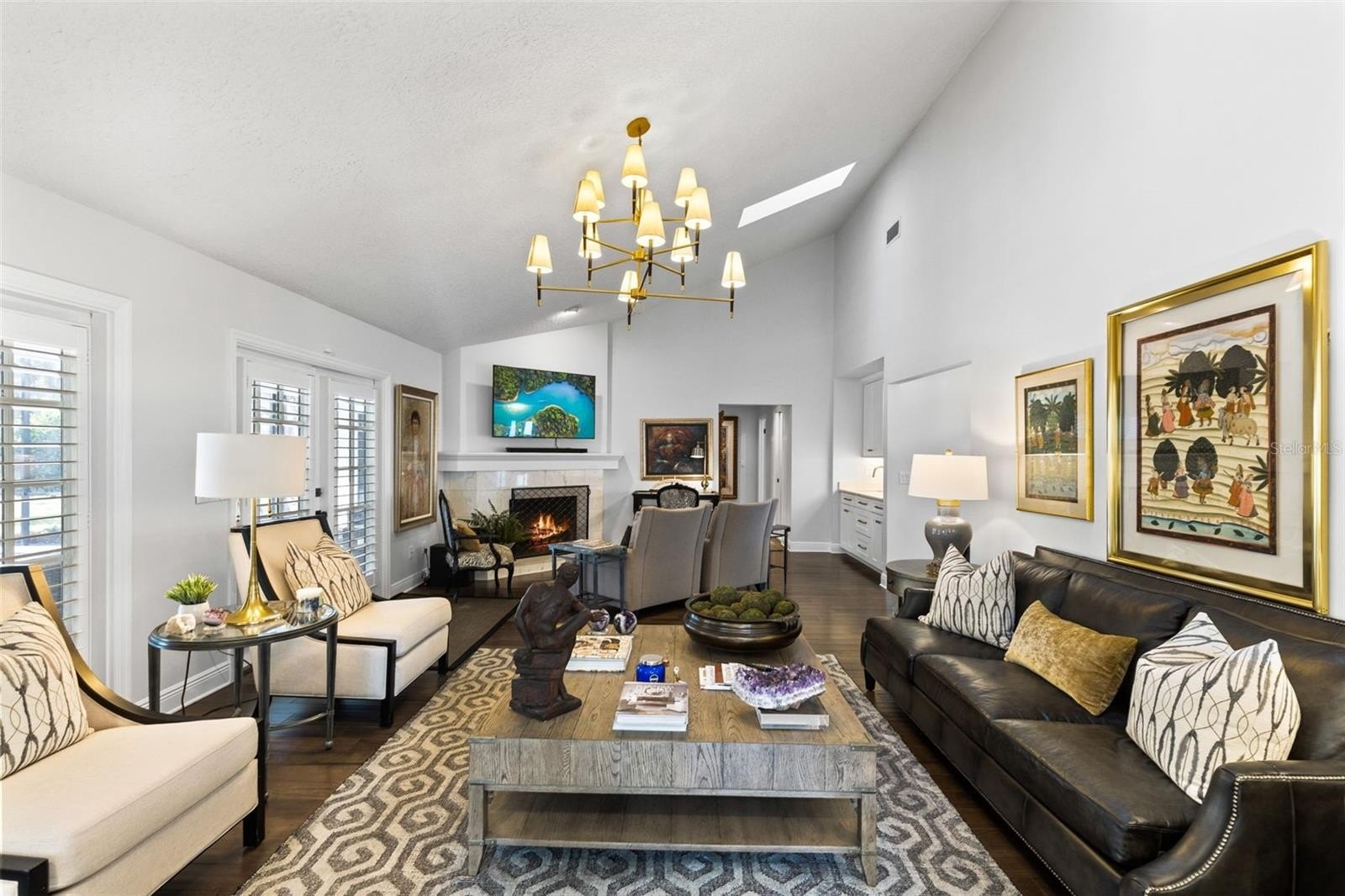 Welcome to this stunning home in Maitland, located at 1817 Braeloch Ct. A welcoming foyer opens to elegant formal living and dining rooms featuring gorgeous fixtures, plantation shutters throughout, 5½-inch baseboards, and beautiful manufactured wood flooring. Vaulted ceilings and skylights fill the home with natural light, while a cozy wood-burning fireplace and stylish wet bar create the perfect setting for entertaining.