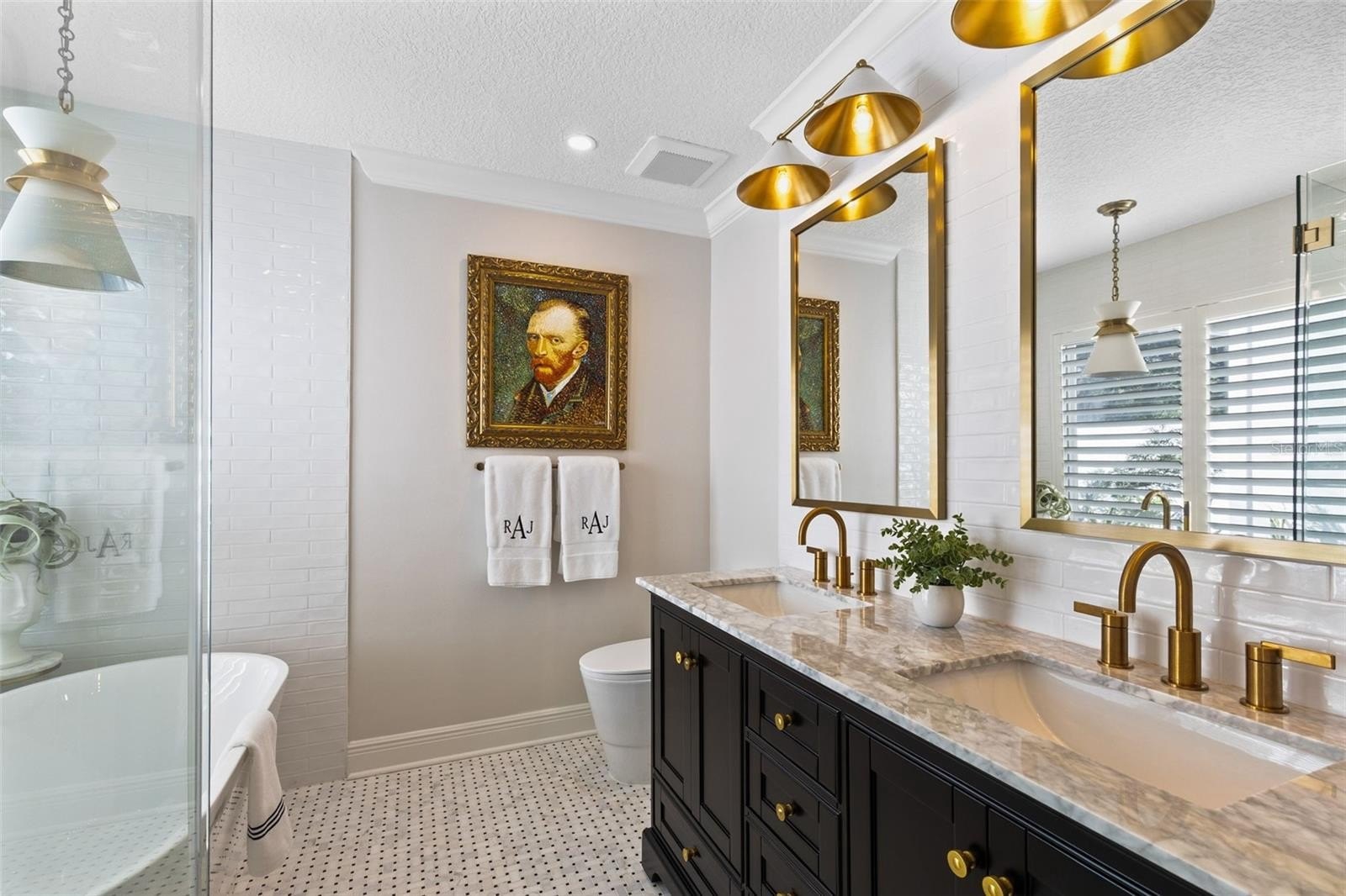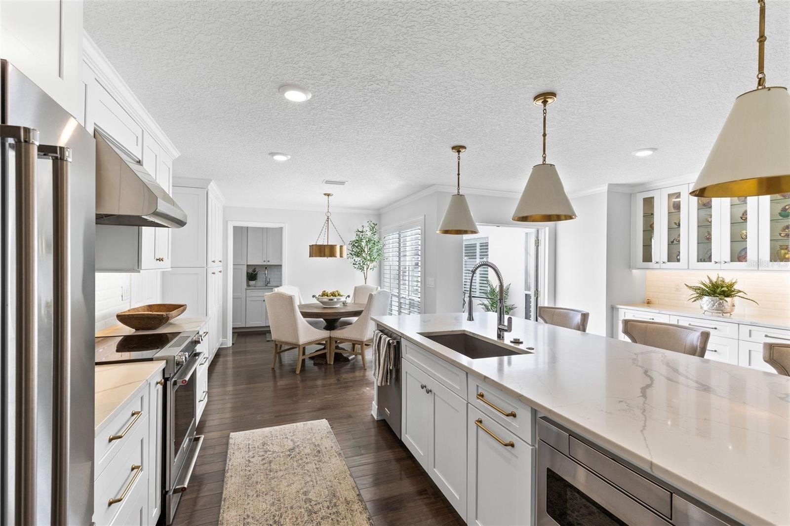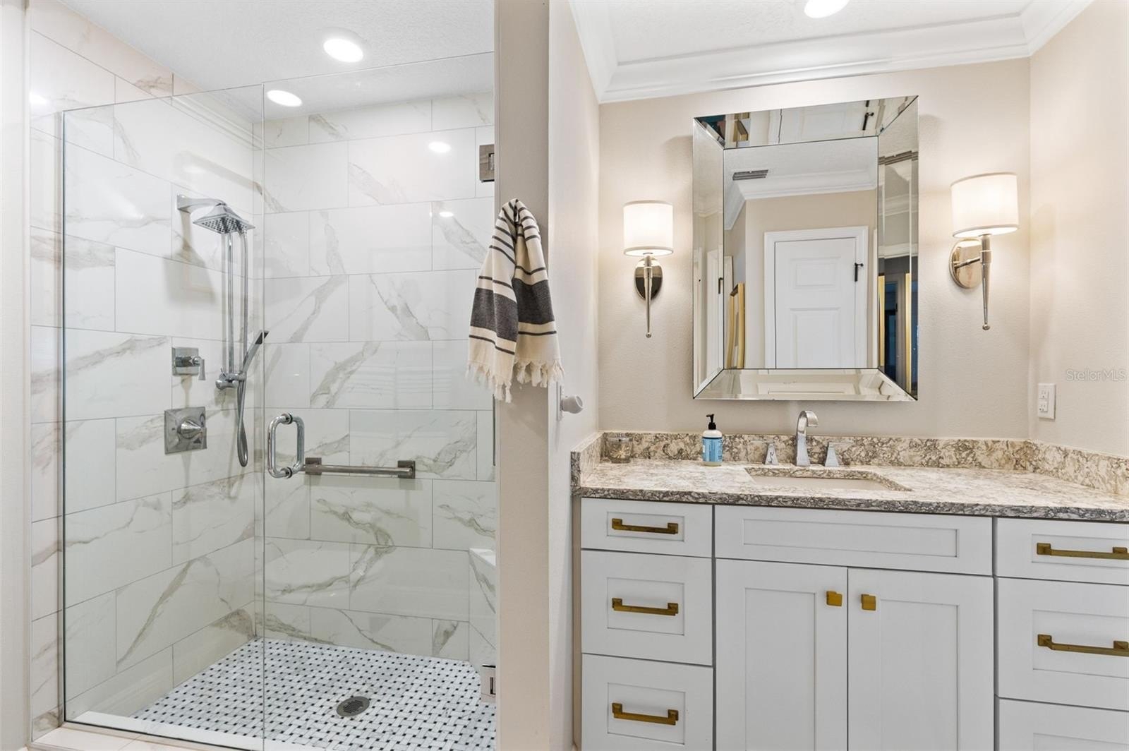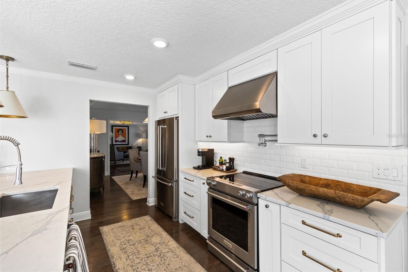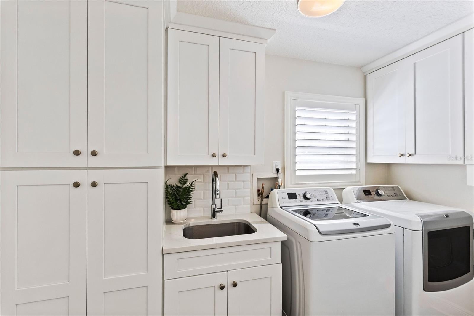 The completely renovated kitchen by Braden Kitchens offers abundant cabinetry and storage, with even more storage available in the spacious laundry room. The luxurious primary suite has been fully updated and features a beautifully redone bathroom and a custom built-in closet system.
