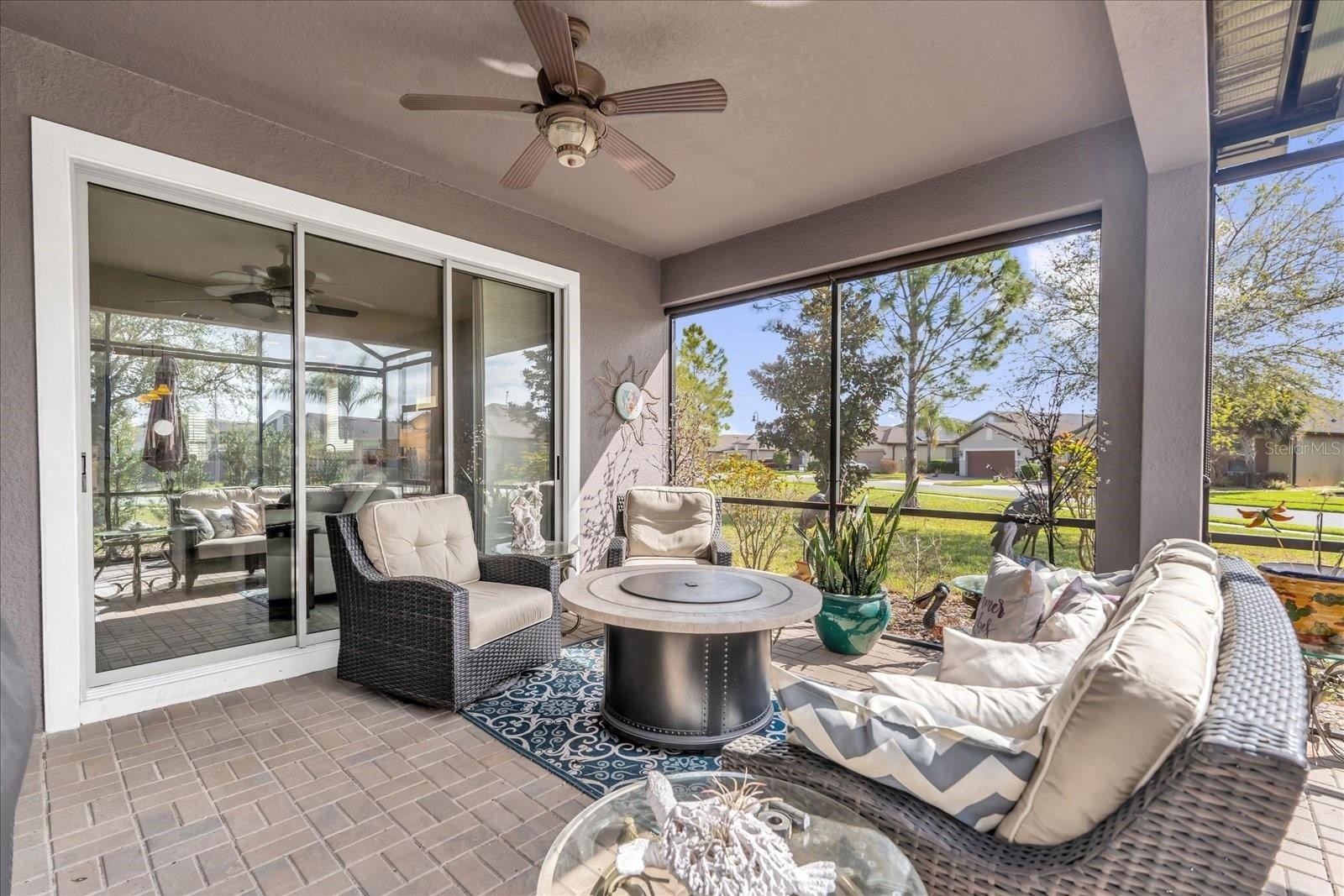 Step outside to the extended screened lanai, the perfect spot to enjoy morning coffee or a relaxing evening cocktail while taking in the Florida breeze.