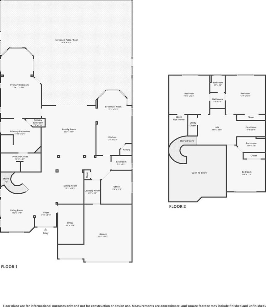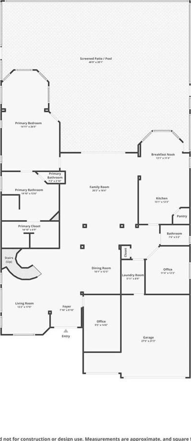 Centrally located, the oversized family room is positioned to overlook the kitchen and breakfast nook, creating a seamless space for everyday living and gatherings. The gourmet kitchen is designed with the home chef in mind, featuring ample cabinetry, two pantries, granite countertops and backsplash, upgraded appliances, and plenty of workspace. The breakfast nook, surrounded by full glass views of the pool and golf course, makes this space both functional and beautiful.
