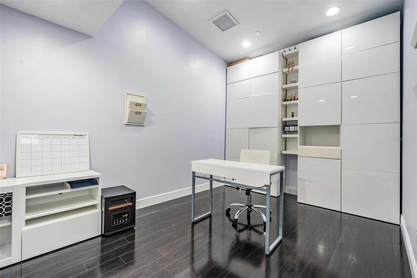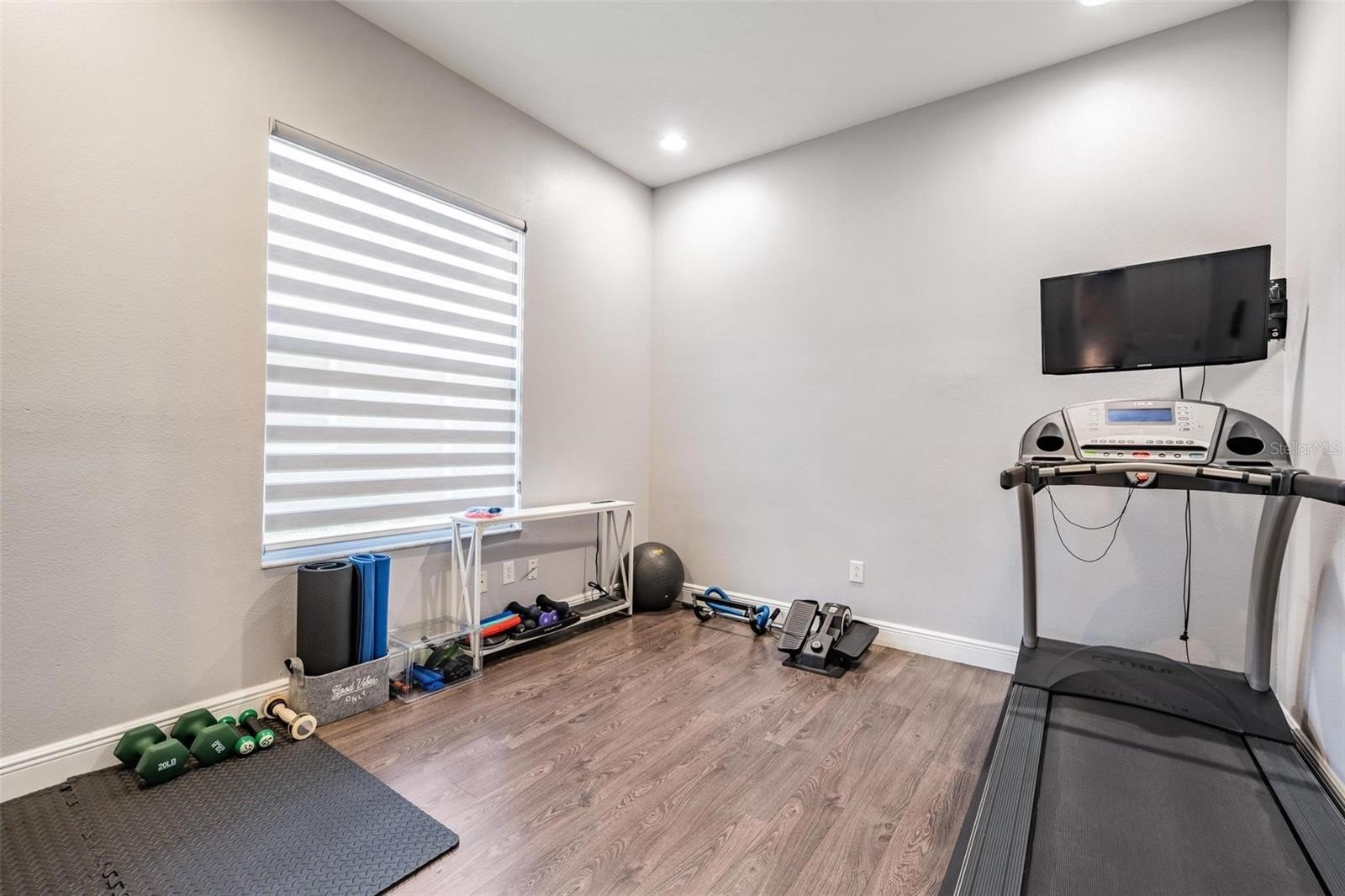 Near the front of the first floor, there is a flex room perfect for a home gym, additional office, or multipurpose space. The home also features a spacious indoor utility room with storage cabinets. The 3-car garage provides plenty of parking and storage, with additional wall cabinetry to keep everything organized. The seller designed the third garage bay to be convertible into an office, with an interior door installed connecting to the main living area near the front entry.