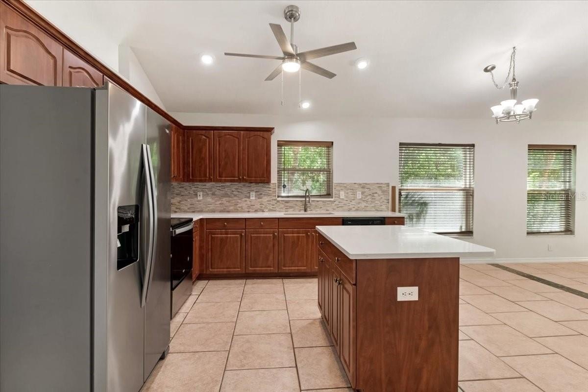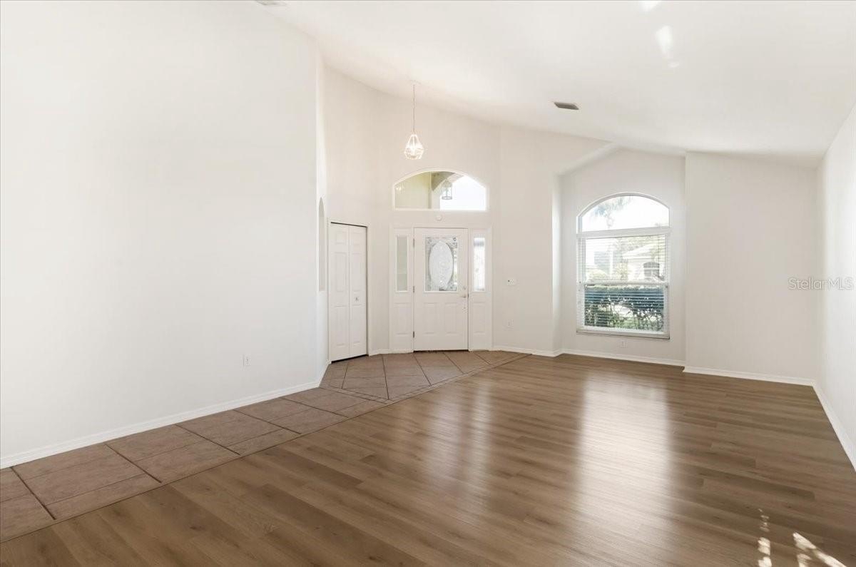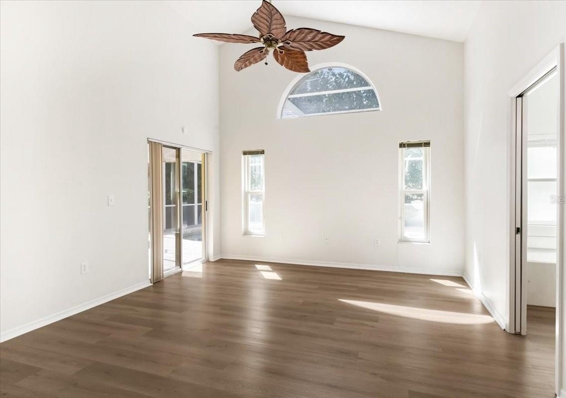 One or more photo(s) has been virtually staged. Welcome to this spacious 4-bedroom, 2-bath home featuring a bright open floor plan and soaring ceilings that create an airy, inviting atmosphere throughout. The home offers separate and generously sized living and dining areas, perfect for both everyday living and entertaining. The main living spaces feature a beautiful combination of tile and luxury vinyl flooring, providing both durability and modern style. The kitchen opens seamlessly to the living area and includes new quartz countertops, ample cabinetry, stainless steel appliances, and a center island for additional prep space. Just off the kitchen, you'll find a built-in cabinet and counter area ideal for a dry bar, coffee station, or serving space when hosting guests. Large hurricane impact windows allow natural light to fill the home, enhancing the open feel. Step outside to enjoy your private heated pool, perfect for relaxing or entertaining year-round in Florida’s sunshine. Located in the highly desirable Mote Ranch community, residents enjoy access to wonderful amenities including a recreational center, community swimming pool, scenic walking trails, and a private dock along the beautiful Braden River. Ideally situated just 3 miles from the University Town Center (UTC), you'll have quick access to premier shopping, dining, and entertainment options. This home combines space, functionality, and an unbeatable location, making it the perfect place to enjoy the Florida lifestyle.