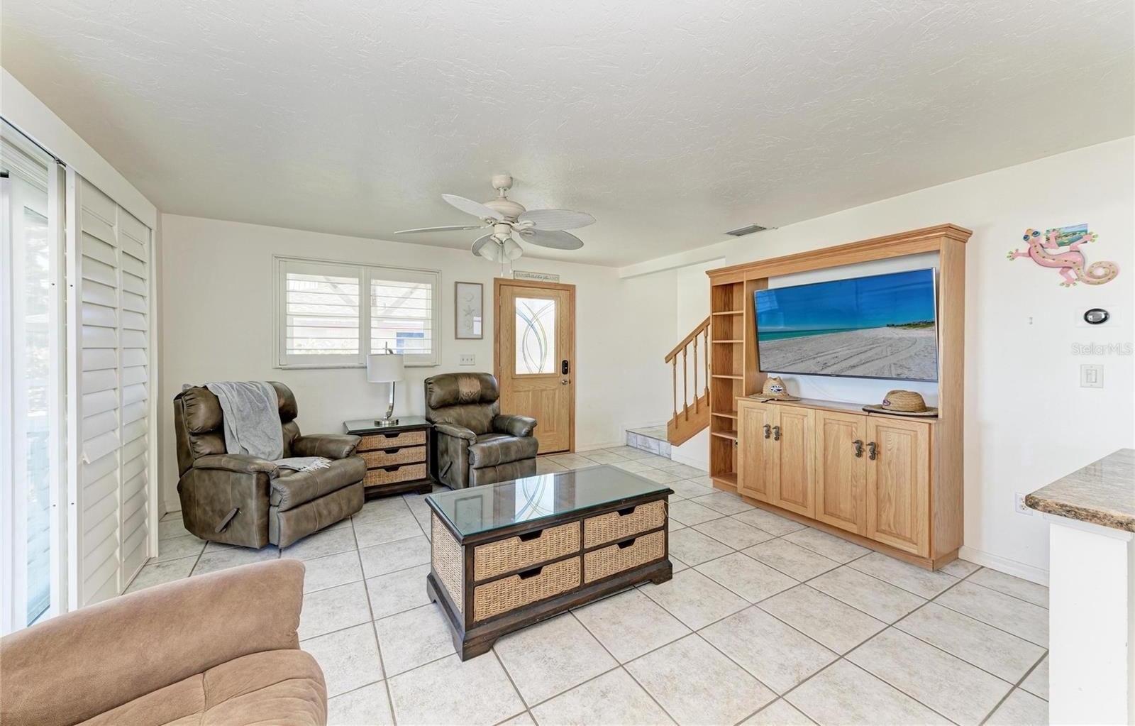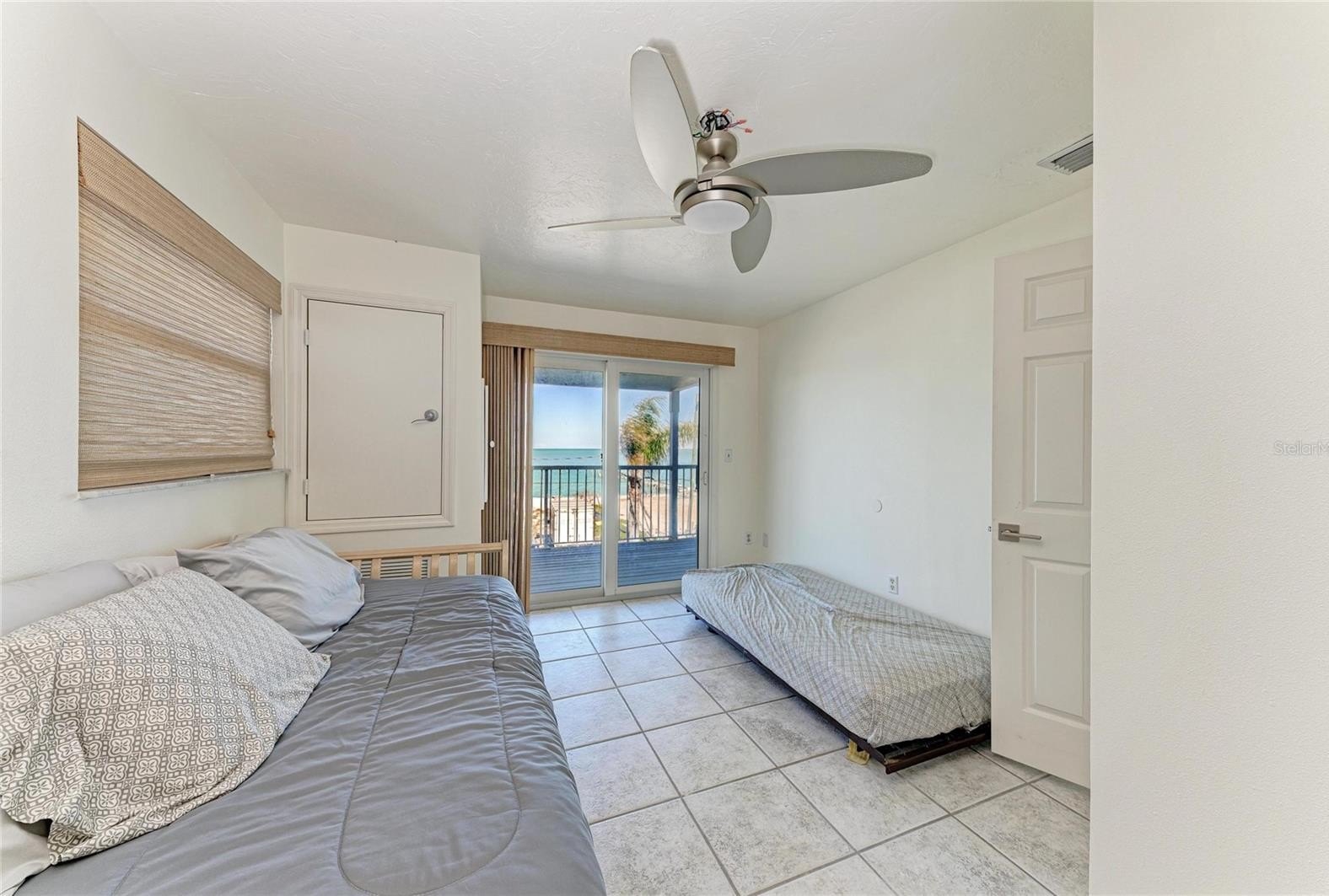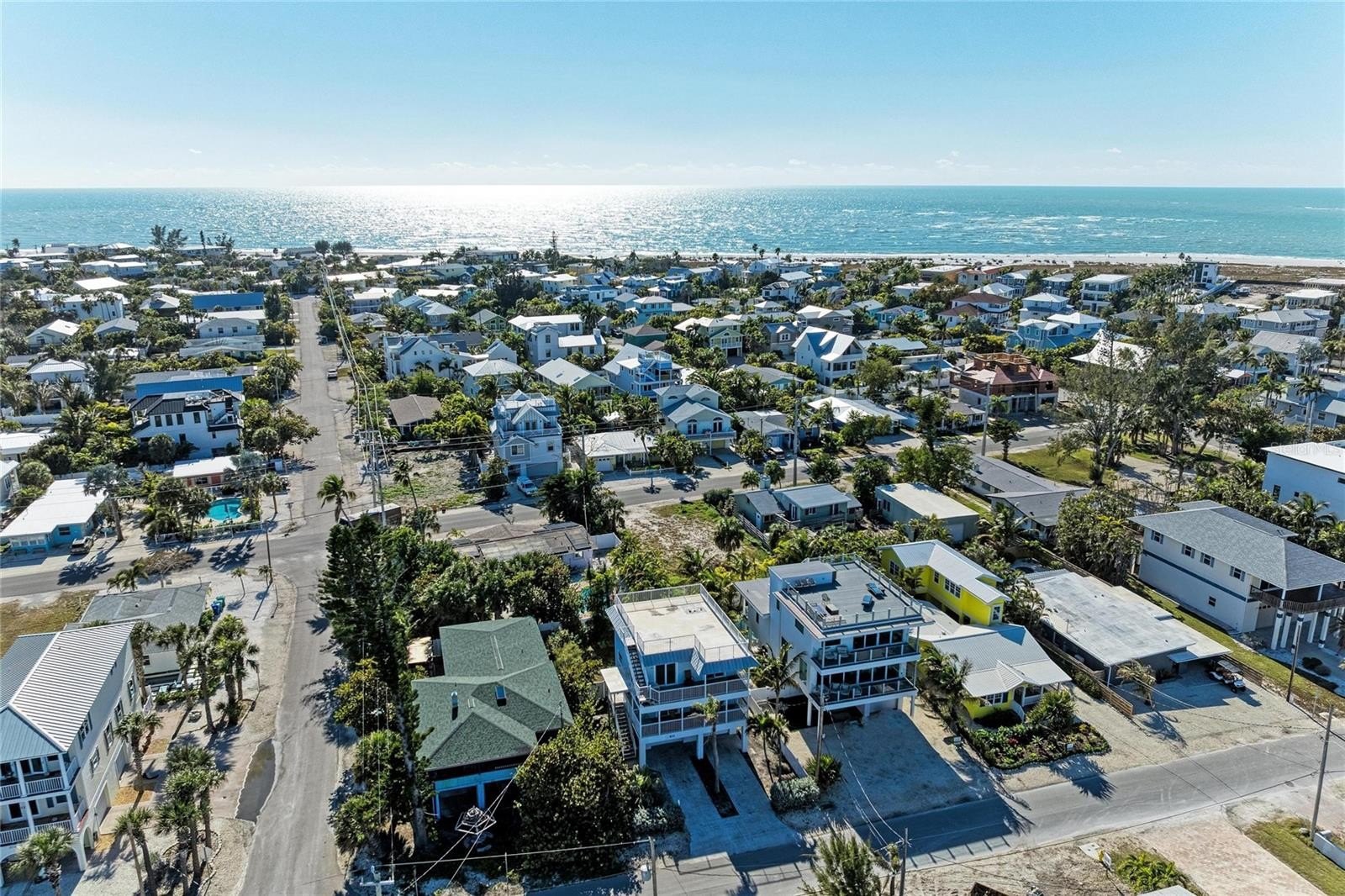 BEAUTIFUL WATER VIEWS. This four-bedroom, two-bath stilt home with a two-car garage offers magnificent, expansive views of Tampa Bay from every level. Designed to capture the beauty of its surroundings, the home features impact-rated windows and sliding glass doors throughout, complemented by stylish plantation shutters. Tile floors flow throughout both living levels and bedrooms. The first level boasts a spacious living and dining room combination alongside an open kitchen complete with granite countertops, stainless steel appliances, wood cabinetry, and an island cooktop—perfect for entertaining. This level also includes a guest bedroom and a full bathroom with a walk-in shower. On the second level, the primary suite offers a large walk-in closet and an en suite bath with a walk-in shower. Two additional bedrooms are located down the hall, along with a convenient inside laundry closet housing the washer and dryer. Both guest bedrooms enjoy stunning blue water views of Tampa Bay. The true money shot awaits on the third-level rooftop deck, where panoramic views stretch all the way around Anna Maria —the perfect setting for sunrise coffee or sunset gatherings. The spacious backyard provides ample room for a pool, and with some updating, this property could truly shine and reach its full potential.