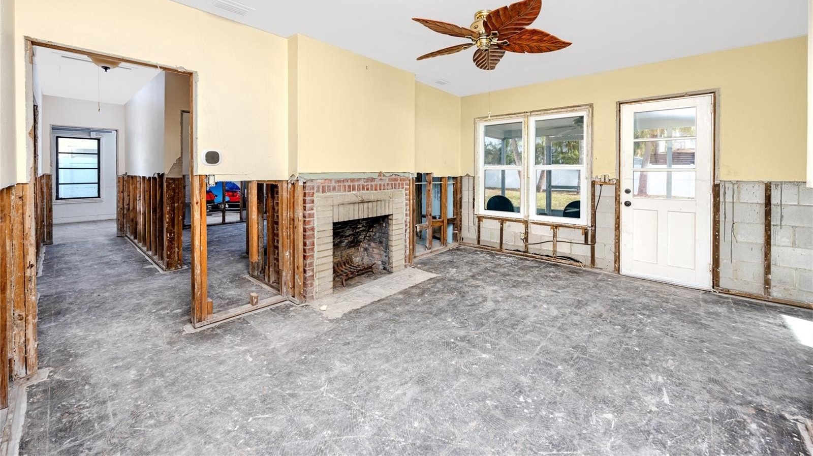 The home flooded during Hurricane Helene and has since been fully remediated. **Sold strictly AS-IS** with cash offers only, this is a direct-access opportunity for investors, builders, and buyers seeking a flood-damaged home on Clearwater Beach with the lot depth and location to support a meaningful renovation or ground-up build. The 1,040-square-foot block structure offers a workable three-bedroom, one-bath floor plan with a living and dining combo, tile floors throughout, a wood-burning fireplace, and an attached one-car garage. Plenty of room on the fenced 6,443-square-foot lot for a future pool.