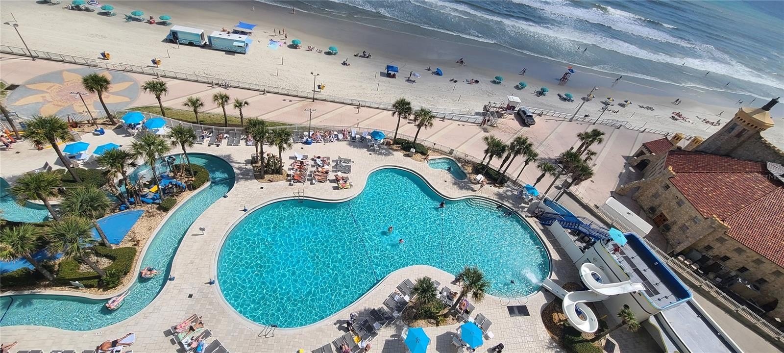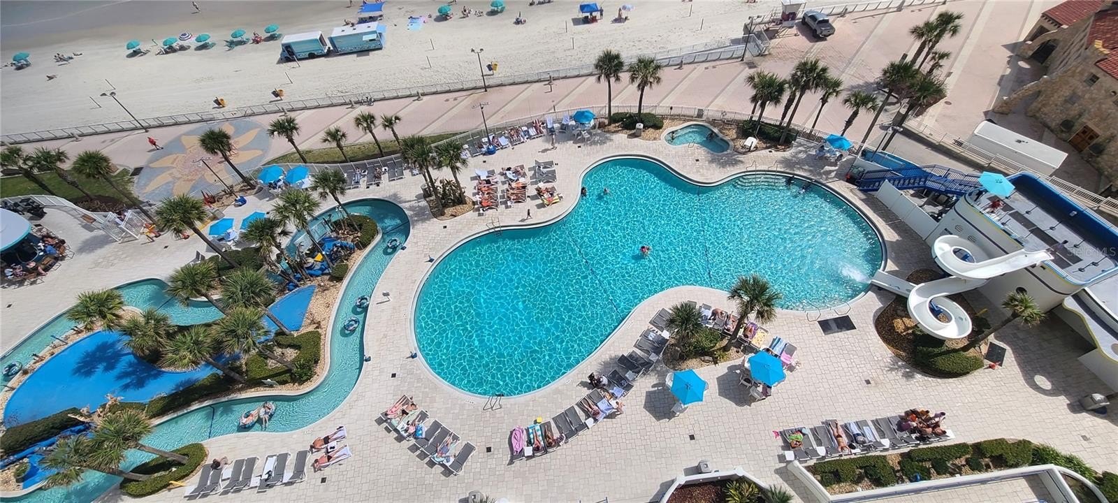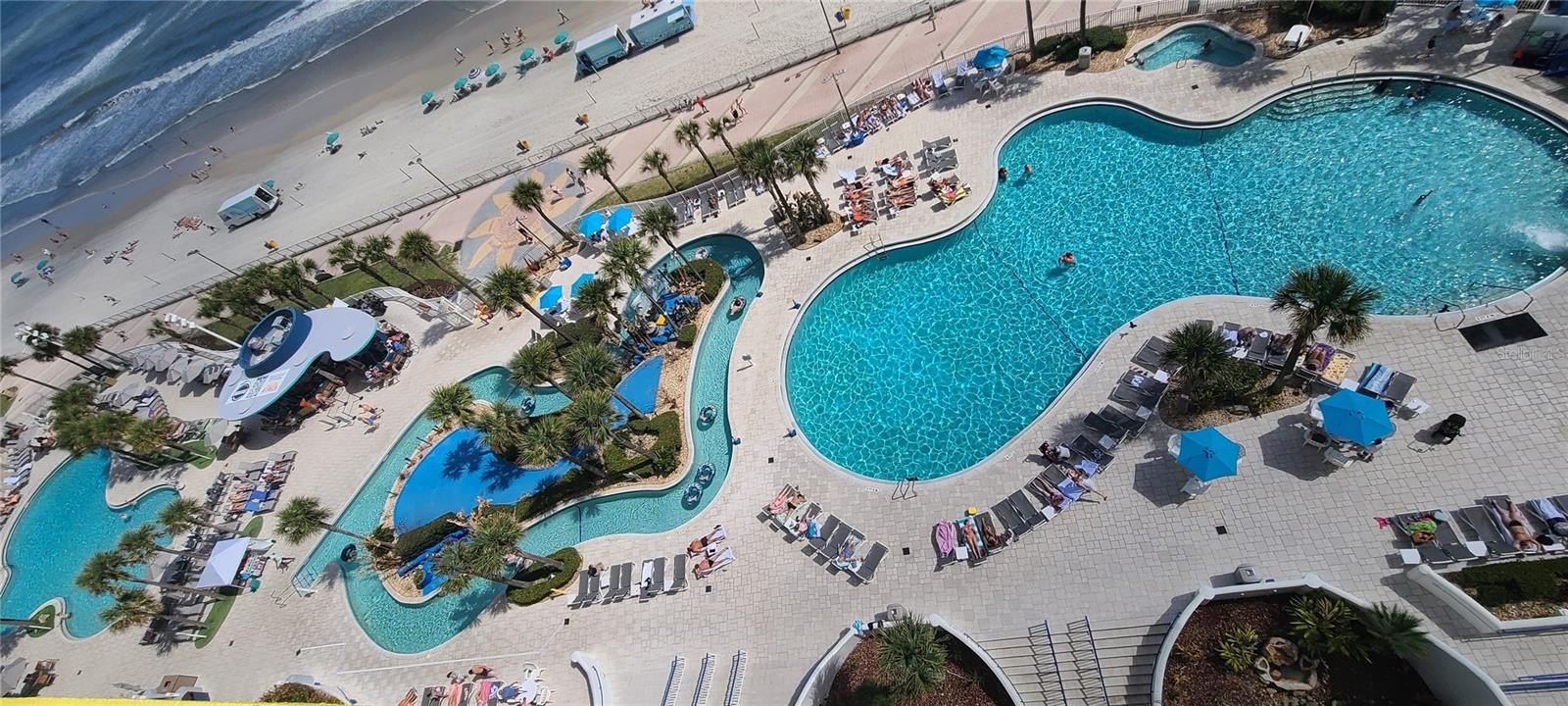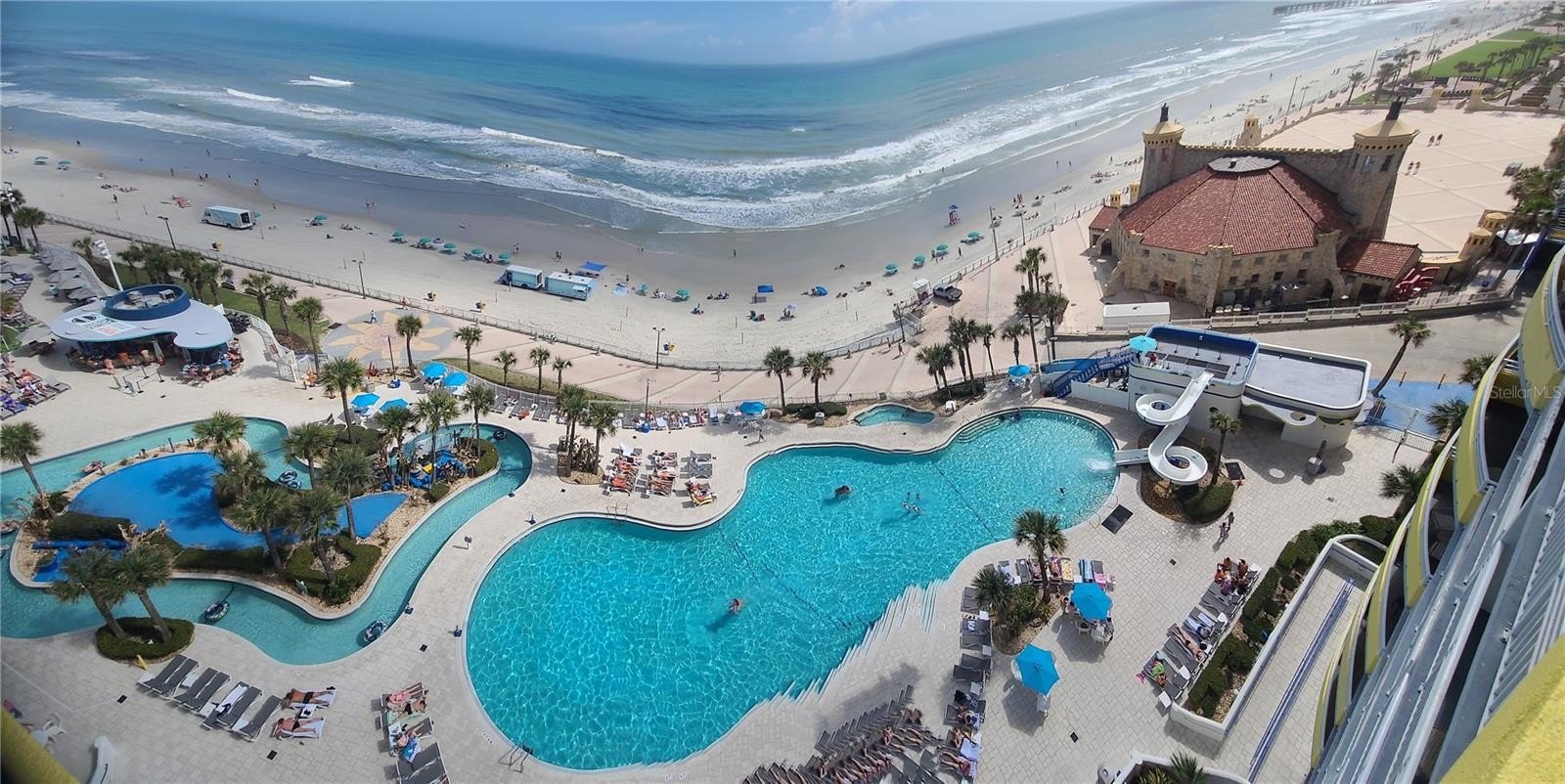 Resort Amenities are 2 full-size outdoor swimming pools with a lazy river and water slide, poolside tiki bar, 2 indoor pools, indoor miniature golf, volleyball, indoor game rooms, fitness center, Activities center, pool tables, free Wi-Fi, computer room & restaurant that offers room service. 24/7 security. Resort also includes the Ocean Walk Shoppes with nightclubs, restaurants & movie theater. All information recorded in the MLS intended to be accurate but cannot be guaranteed.
