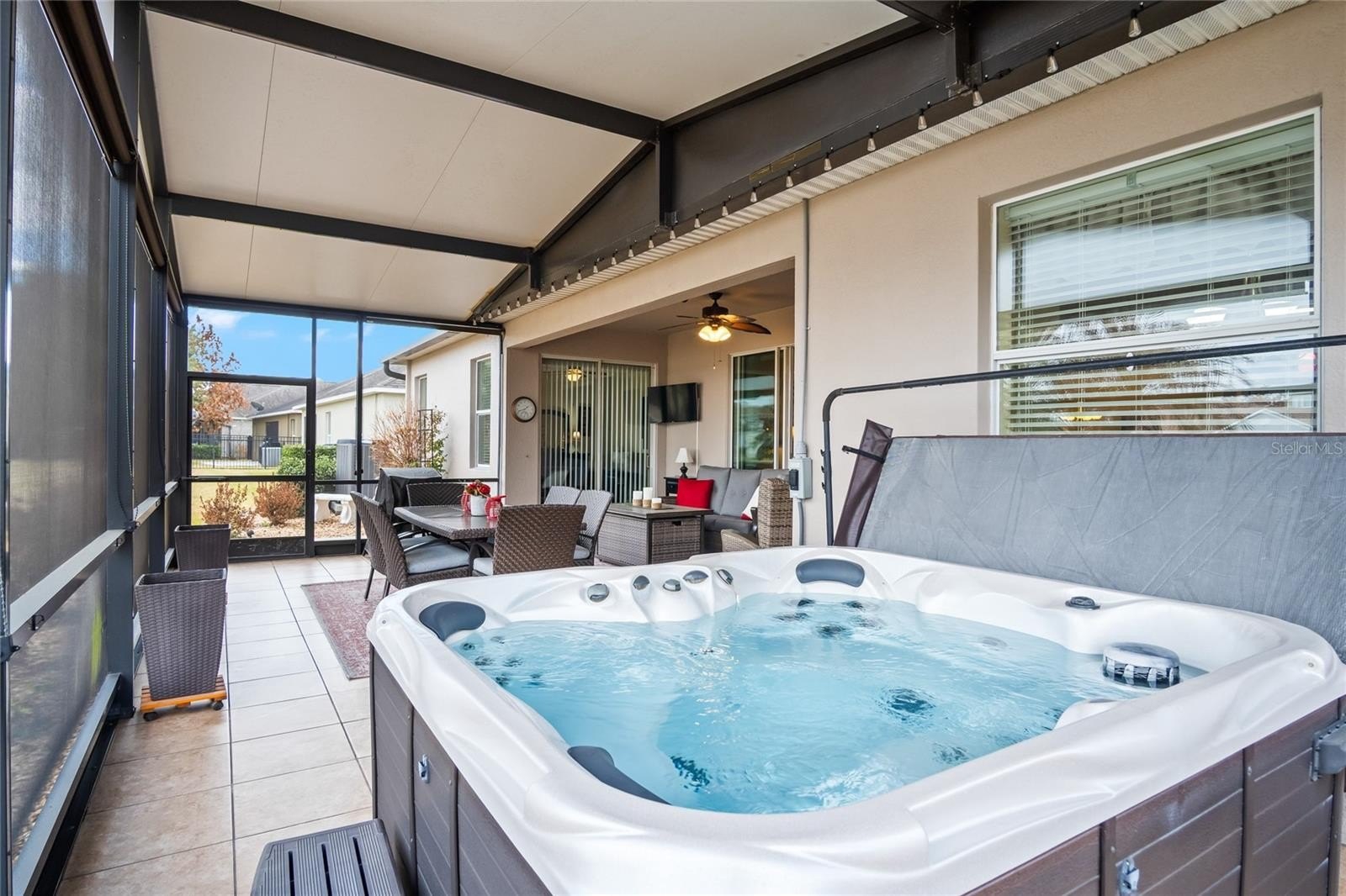 Step inside to an inviting open concept layout where the living, dining, and kitchen areas flow seamlessly together, creating the perfect space for both everyday living and entertaining. Extend your living outdoors to the covered and screened lanai, complete with a hot tub, ideal for relaxing and enjoying quality time with family and friends.