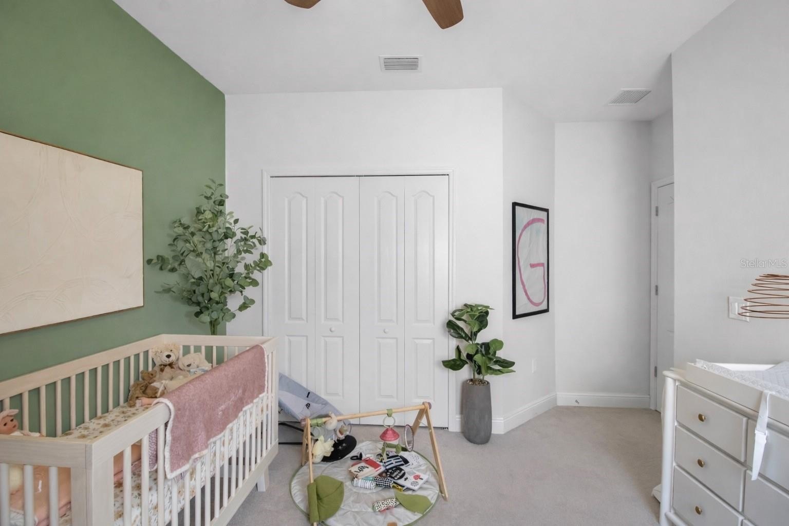 The spacious primary suite offers a relaxing private sanctuary with large windows, generous closet space, and a well-appointed ensuite bathroom featuring dual vanities and a walk-in shower. Additional guest bedrooms are thoughtfully positioned within the split floor plan to provide privacy for family members and visitors.