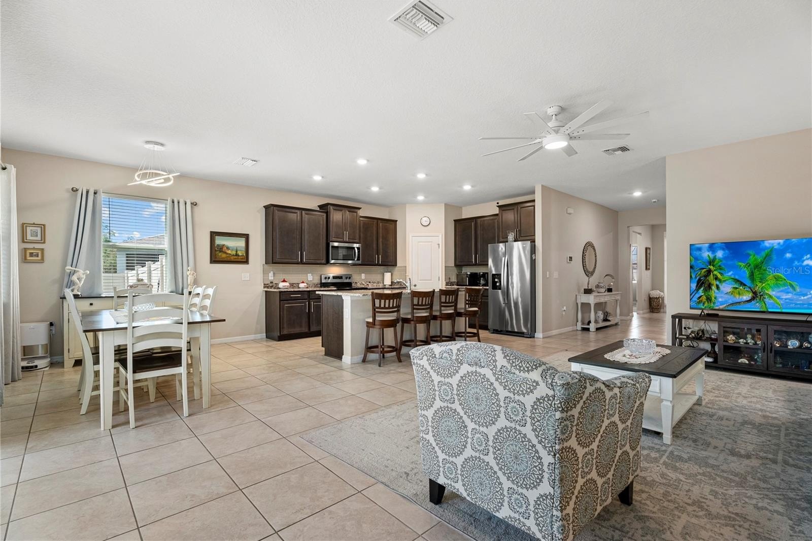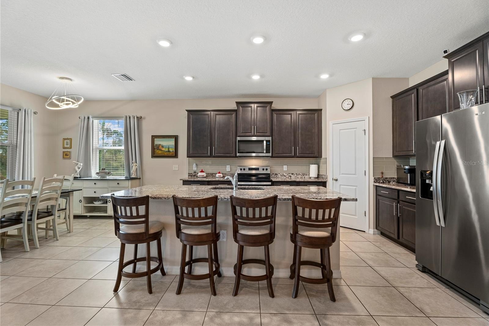 Welcome to stunning 4-bedroom, 2.5-bathroom residence perfectly situated on a premium cul-de-sac lot in the highly sought-after community of Southern Oaks! This 2020-built home offers 2,036 square feet of modern, open-concept living paired with a breathtaking, southern-facing view of the water and preserve. Featuring sleek grey wood cabinetry, granite countertops, a glass subway tile backsplash, and premium stainless steel appliances. The spacious kitchen flows seamlessly into the expansive living and dining areas, making it an entertainer's dream. In addition to the primary suite and two guest bedrooms, the fourth bedroom serves as a perfect optional den or home office - ideal for today’s remote professional. Relax on your covered lanai and enjoy al fresco dining while taking in the peaceful views of the lake and natural preserve. This home is built with all-concrete block construction and includes hurricane shutters for added peace of mind.