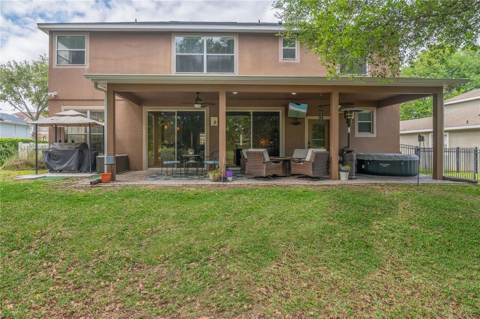 Located in the highly desirable Rock Springs Ridge community, this beautifully remodeled 5-bedroom, 3-bath home sits on a quiet cul-de-sac street on an expansive 1/3-acre soon to be golf course lot with no rear neighbors and features a NEW ROOF (2025). The setting offers peaceful green space views and a rare sense of privacy, while the soon-to-be reopened golf course presents an exciting opportunity for future equity. The home is also zoned for A RATED KELLY PARK SCHOOL, serving elementary through 8th grade, adding everyday convenience to this exceptional location. As you arrive, the home immediately welcomes you with a grand foyer entry, where a formal dining room sits on one side and an elegant formal living room on the other. A striking angled staircase creates a beautiful architectural focal point, while immediate views of the lush green space behind the home draw your eye straight through the living areas, creating a light, open, and inviting first impression. The main living areas are designed for both comfort and entertaining, featuring gorgeous luxury vinyl flooring throughout 2021, crown molding, and custom wood wall art details that add warmth and character. The heart of the home is the stunning kitchen, highlighted by exotic granite countertops and a dramatic waterfall island, perfect for gatherings large or small. Natural light pours into the home through dual sliding glass doors and an expansive rear window, framing the picturesque views and creating a seamless connection between indoor and outdoor living. The downstairs living spaces are ideal for entertaining, while the upstairs layout provides a more private retreat. The primary suite features an elegant tray ceiling, and the upstairs primary suite, positioned near the additional bedrooms, creates a family-friendly layout that offers both privacy and connection. The primary bath is gorgeously remodeled with an extended showing with extensive tile work, new vanities and flooring! Step outside to enjoy the large covered patio that provides generous shade, overlooking the expansive fenced backyard and peaceful green space beyond — a perfect place to unwind or host friends and family. Additional upgrades and thoughtful improvements make this home both beautiful and functional. WATER FILTRATION SYSTEM, TANKLESS WATER HEATER 2023, A/C 2023, With its peaceful views, spacious lot, and no rear neighbors, this beautifully updated Rock Springs Ridge home offers a lifestyle that is hard to find and even harder to leave. Apopka is an amazing location that combines the best of convenience between Orlando, Winter Garden, Altamonte, and Lake Mary, with 25 minutes to Disney, yet a small-town atmosphere offering quick access without heavy traffic. Just 3 miles to Wekiva Parkway. Home to the Field of Dreams Recreation Sports Park, Trails, and Amphitheater, offering concerts, festivals, and free events!