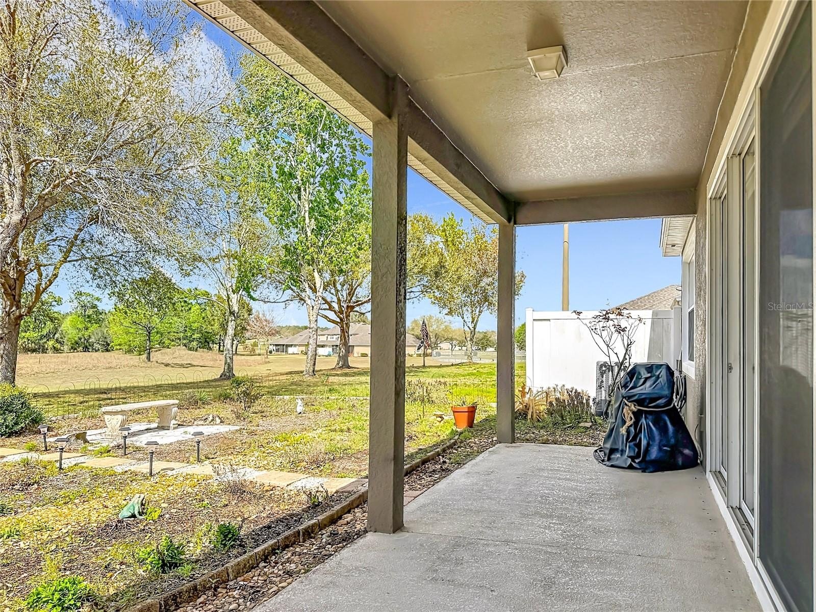 Welcome to the beautiful guard-gated golf community of Sorrento Springs. This spacious 3-bedroom, 2-bathroom home features a new roof (2024), high ceilings, an open floor plan, and abundant natural light throughout. Just beyond the living space, enjoy picturesque views of the peaceful landscape right outside the back door. The primary suite offers the same serene view and includes a well-appointed en-suite bathroom with a garden tub, separate shower, dual vanities, a built-in closet, and a walk-in closet. Step outside to the back patio and backyard, an ideal space for entertaining, grilling, or simply relaxing and enjoying the quiet surroundings after a long day. Residents of Sorrento Springs enjoy guard-gated security and a variety of community amenities, along with the scenic rolling fairways of the 18-hole Eagle Dunes Golf Course, making it a perfect place to enjoy the Florida lifestyle.