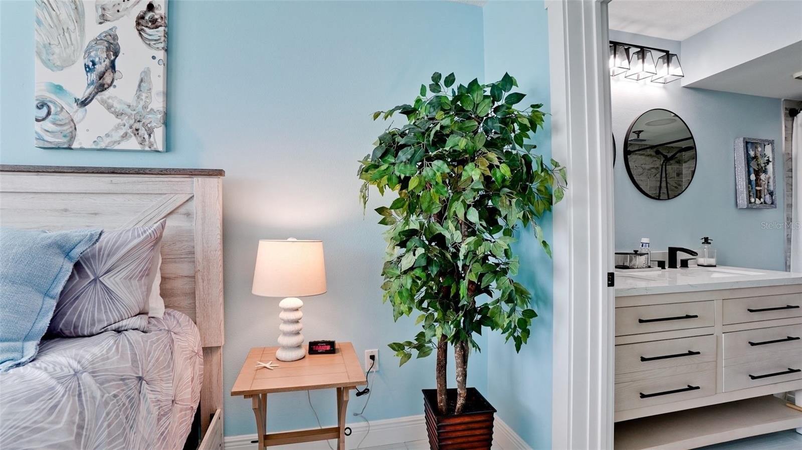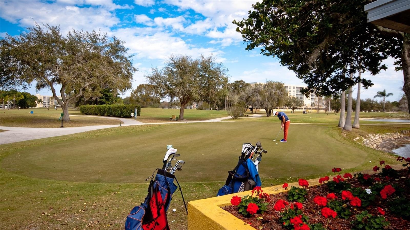 Walk right into tropical splendor, from the tranquil color palate, extended open concept design & the full wall of hurricane sliders providing your unobstructed view, from your 250 sq foot open air balcony, overlooking the golf course! (Pay as you play, NO membership required!) You've just entered into this spacious 2-bedroom, 2 bath split plan that is beckoning you to enjoy the "vacation lifestyle", permanently. Tastefully decorated & coordinated throughout, you'll want your friends & family to invite themselves over to show off this exceptional find. Complete with stainless steel appliances w/ water & ice in the door, quartz counters throughout, new led lighting & ceiling fans, bathrooms including vanities & toilets & dual sink vanity in primary bathroom. Tiled floors throughout, eat in kitchen or enjoy the bar pass through which can accommodate up to 4 barstools. Extra floor to ceiling pantry cabinets were also completed in the renovation less than 3 years ago. To conclude this project, hurricane windows completed the ambiance. Your guest room is located in the front of the unit to allow privacy from the primary suite. This area also has a full bath, complete with a soaking tub for relaxation. Your full size laundry is conveniently located in this area & includes cabinets for extra storage as well. Extra cabinets & counters were also added to your generous size kitchen. Everything can be tucked neatly away. Tiled floors throughout, you have your eat in kitchen or enjoy the bar pass through which can accommodate up to 4 barstools. Extra floor to ceiling pantry cabinets were also completed in the renovation less than 3 years ago. To conclude this project, hurricane windows completed the ambiance. Your guest room is located in the front of the unit to allow privacy from the primary suite. This area also has a full bath, complete with a soaking tub for some relaxation. Your full size laundry is conveniently located in this area & includes cabinets for extra storage. Extra cabinets & counters were also added to your gorgeous generous size kitchen. Everything can be tucked neatly away. Continue onto your dining area which leads into the living room and then right onto the lanai. The open air balcony is rare and only available to the first floor units in 2 buildings. The primary suite has a generous size walk in closet that was carefully planned out with the design to accommodate all your essentials. The bathroom has two vanities to allow space forgetting ready. A custom glass door was specially designed for this space, completely frosted for privacy with allowing light to permeate in.