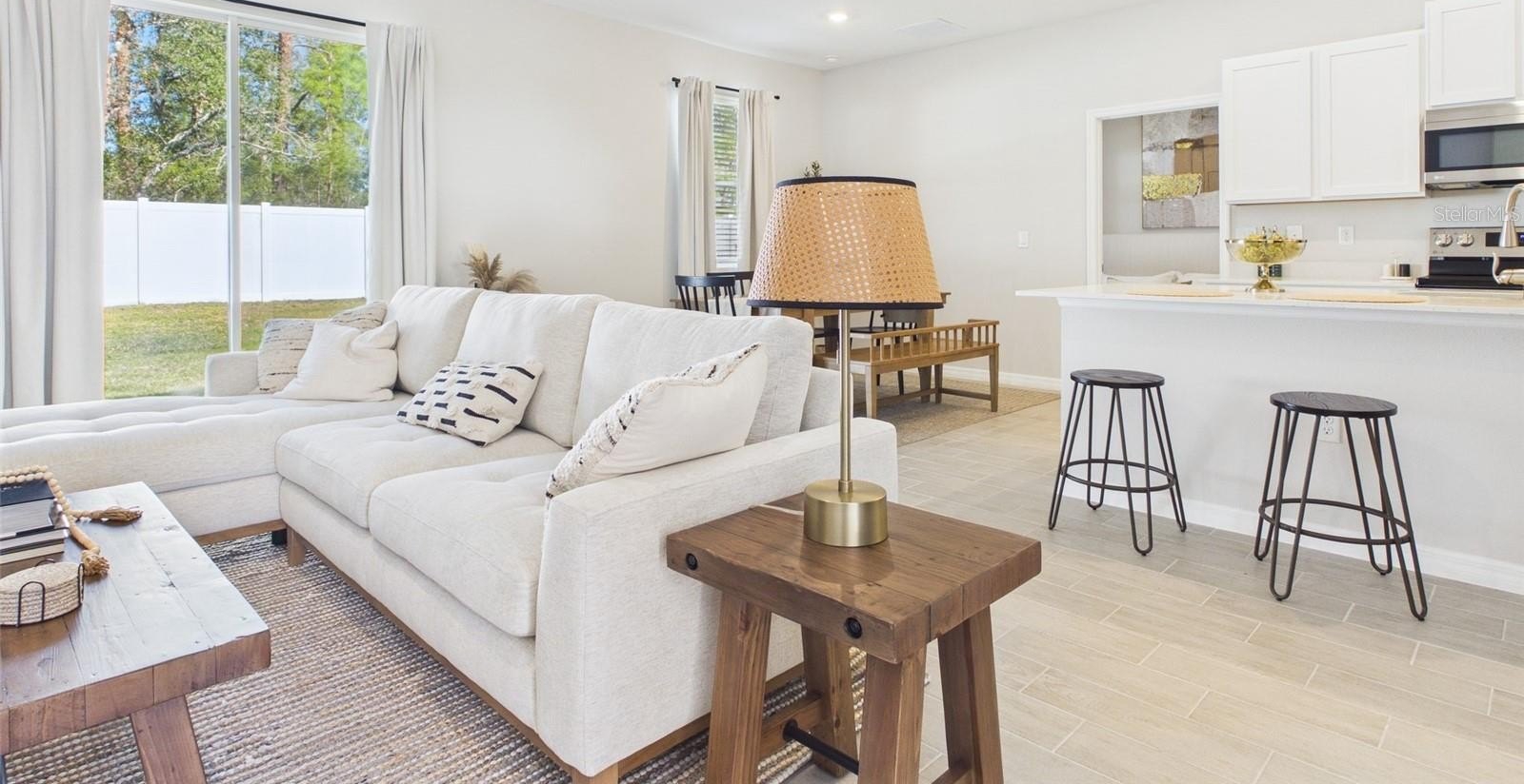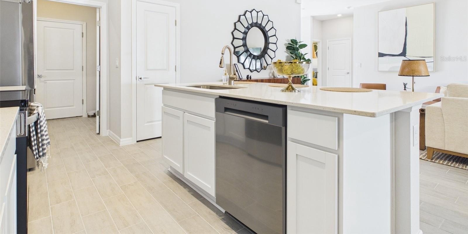 One or more photo(s) has been virtually staged. This beautifully designed 4-bedroom, 2-bath home offers 1,787 square feet of thoughtfully planned living space with premium finishes throughout. The spacious open- concept floor plan is enhanced by 9’4” ceilings and luxury tile plank flooring in every room. The kitchen features 36" real wood cabinetry, stone countertops, and stainless steel appliances, creating a stylish and functional space ideal for everyday living and entertaining. Additional highlights include large walk-in closets, double-pane low-emissivity windows, LED lighting, and a high- performance 16 SEER HVAC system for year-round energy efficiency. The exterior is complemented by designer landscaping and a full irrigation system, adding to the home’s curb appeal. This home also includes structural warranty by Maverick, offering peace of mind for years to come. A perfect blend of comfort, quality, and modern design—this home is move-in ready and built to impress.